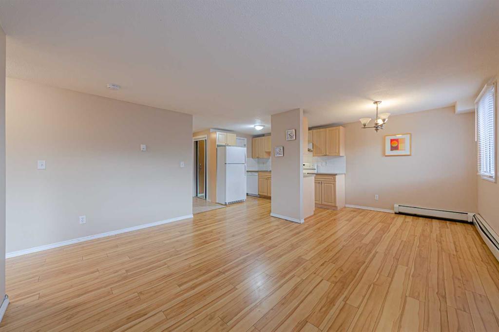 Calling all first time buyers and investors! Great 2 bedrooms & one bath concrete building centrally located in NW Calgary under $160K! Prime location with walking distance to library, arena, swimming pool, Bus, shopping and schools! With over 700sqft of living space, this condo unit features an open plan. Bright SW facing living room has 2 big windows allows tons of natural lights floods on updated laminate floor. Functional kitchen has white appliances and a huge walk-in pantry great for food storage. Good sized master bedroom has double mirror closets easy to fit a king size bed. 2nd bedroom also has a closet with 2 mirror doors. 4pcs main bath off the bedrooms to provide maximum convenience. To complete the package, there’s also a onsite laundry room with a stacked washer/dryer, as well as an assigned parking stall in the underground parking pad. Estimate market monthly rent for this unit is $1300-$1400…take advantage of the low interest rate and grab this fantastic deal of today’s market!