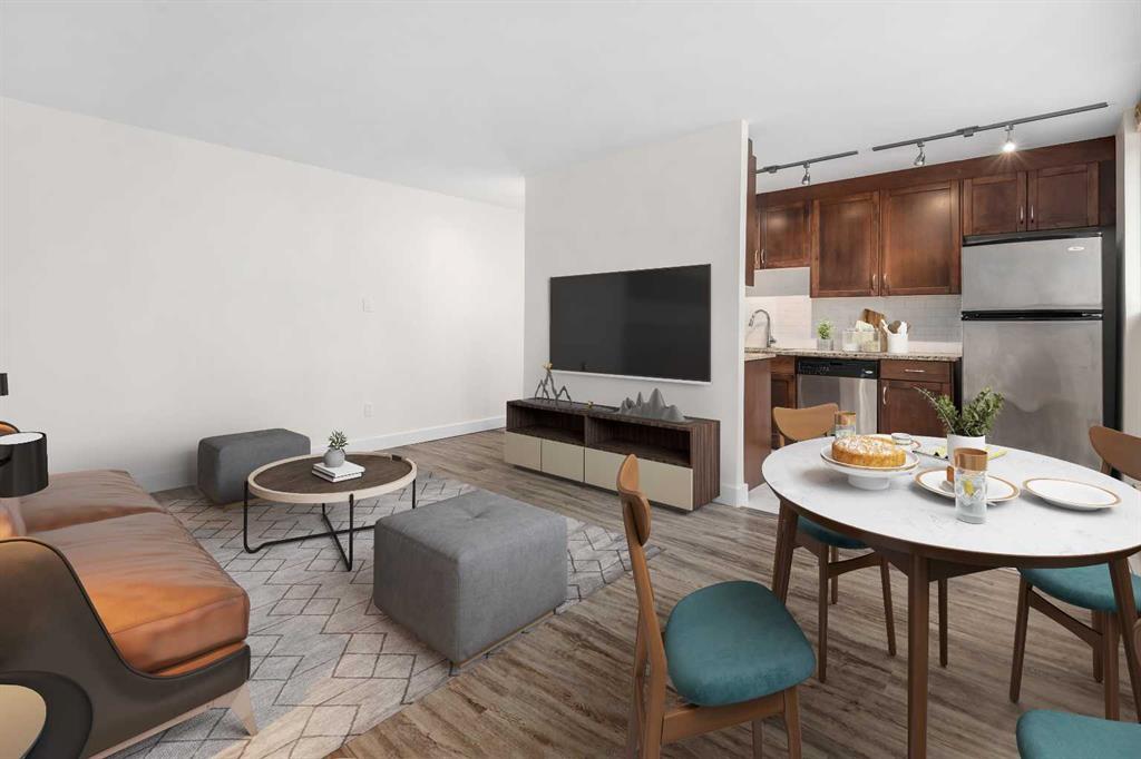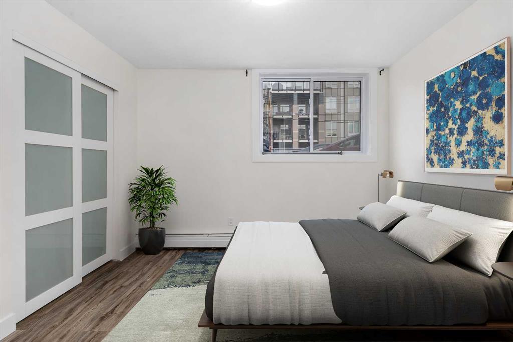 Steps to the Sunnyside C-Train station, this cute condo is located on a quiet, tree-lined street in the heart of Sunnyside. This is a great opportunity for a first time Buyer or for an investor. As you step inside this unit, you’ll be greeted by an abundance of natural light pouring in through the large, North facing windows. The freshly painted living and dining rooms are flooded with warmth, making it the perfect spot to relax and unwind after a long day. The kitchen has newer brown cabinetry and is equipped with everything you need, including granite counters and stainless steel appliances – perfect for cooking and entertaining. The large bedroom is a serene retreat, with good-sized closets and plenty of natural light. This fantastic building has everything you need, including a common area laundry room, secure bike storage, and assigned parking. And with hookups for in-suite laundry, you can have the convenience of doing your laundry from the comfort of your own home. This property offers a great location within Sunnyside to either call home or use as an investment property. Fast possession if you wish to assume the tenant!