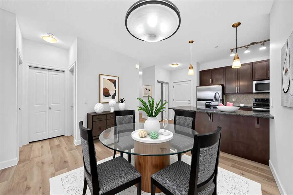 Welcome to this bright & beautifully updated 940 sqft apartment in the heart of Arbour Lake! This spacious 2-bedroom, 2-bathroom unit features a flexible den—perfect for a home office, guest room, storage, extended wardrobe…use your imagination!Step inside to brand new luxury vinyl plank (LVP) flooring that flows seamlessly throughout the living space, creating a modern and low-maintenance finish. The kitchen boasts granite countertops and a thoughtful layout of functional cabinet space. Store the bulk Costco hauls in the storage space tucked at the end of the kitchen. The open layout is surrounded by generous windows that flood the home with natural light, giving it an open, airy feel.The living room provides a warm and welcoming gathering space around the gas fireplace for winter evenings. The primary bedroom includes a walk-through closet and a private ensuite, with the second bedroom conveniently located near the second full bath. In-suite laundry adds convenience, and you’ll appreciate the two designated parking stalls in the secured underground parkade.LOCATION: Positioned just steps from the Crowfoot LRT station, commuting couldn’t be easier — whether you’re heading downtown or to the University of Calgary. Major roadways like Stoney Trail, Crowchild Trail, and Sarcee Trail are all nearby, giving you excellent access to the rest of the city. Arbour Lake is known for its private lake community, with year-round recreation including swimming, boating, ice skating, and pathway systems for walking or biking. You’re moments away from Crowfoot Crossing, a bustling outdoor retail hub with over 240 shops and services. Grocery needs are well met with nearby Safeway, Co-op, Community Natural Foods, and Amaranth Whole Foods Market. For recreation, the Melcor YMCA offers fitness programs, pools, and community space. Prime location, versatile layout with almost 1000sqft of updated living space, 2 parking stalls – perfect for first-time homebuyers or investors. Take advantage of the opportunity and dive into this property.