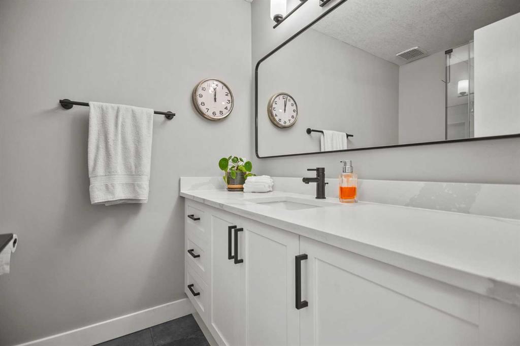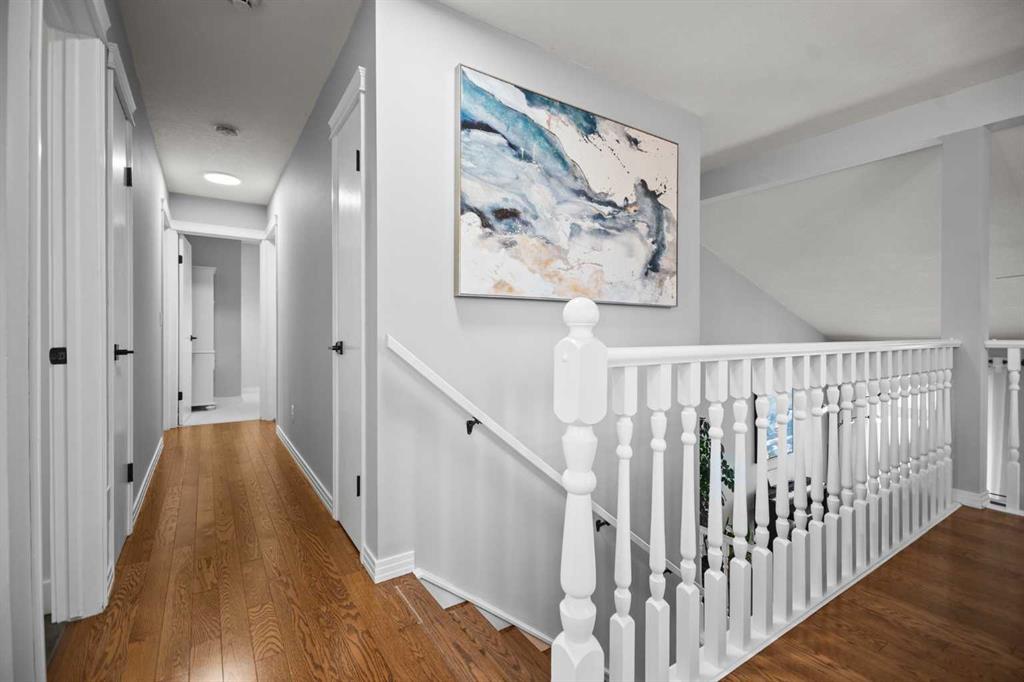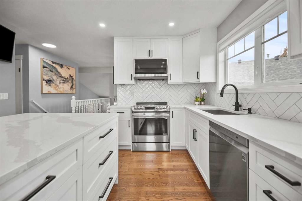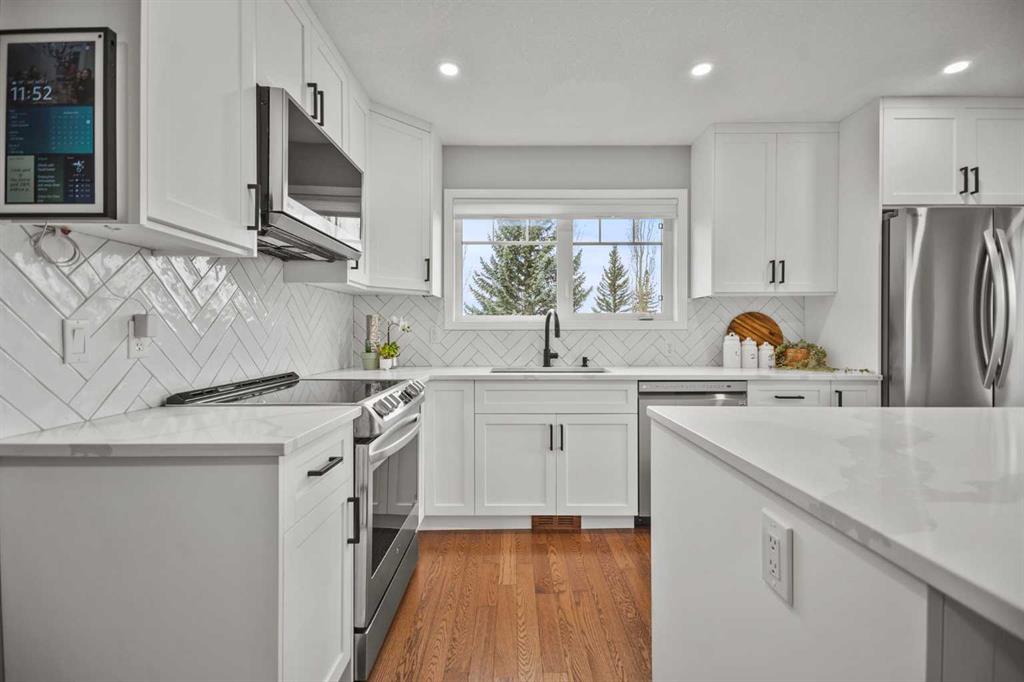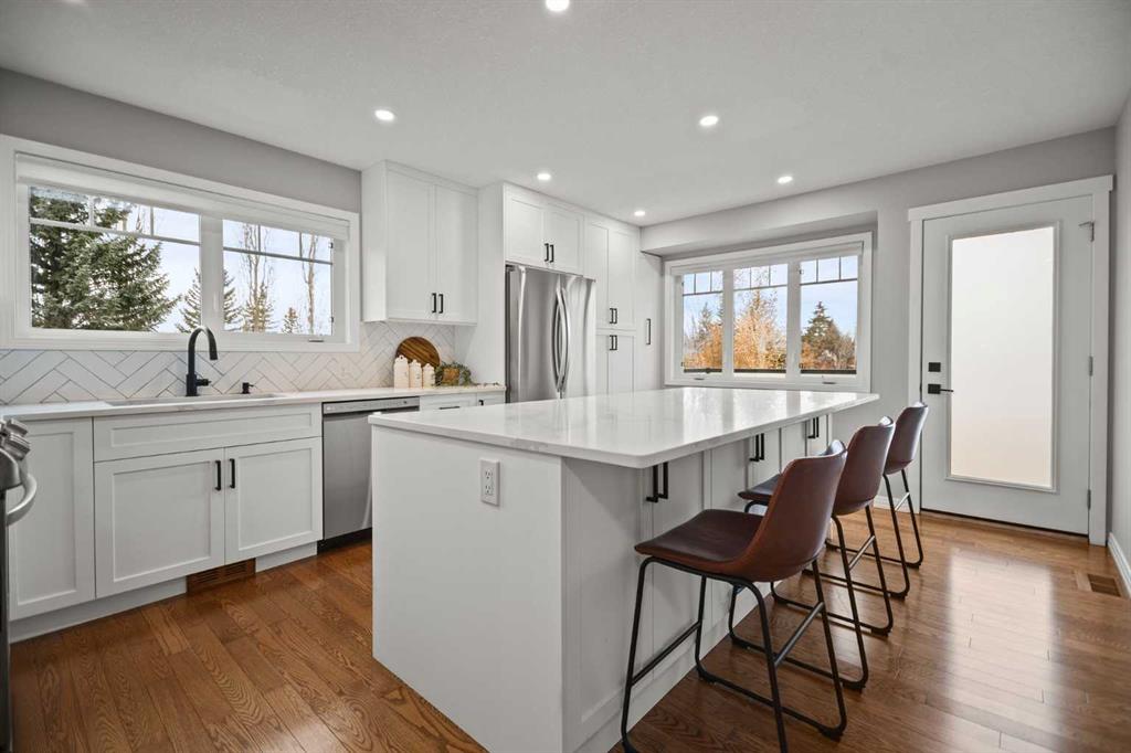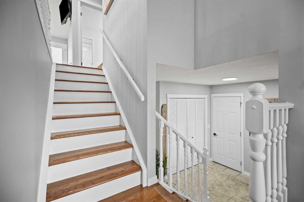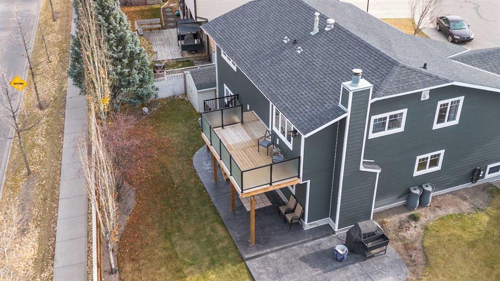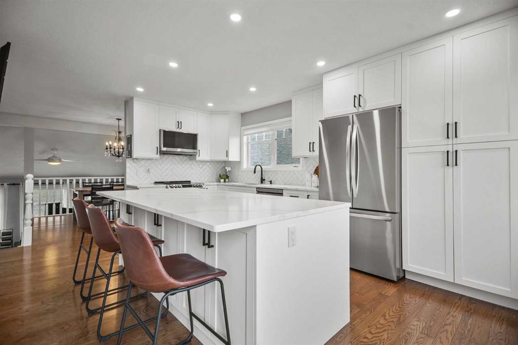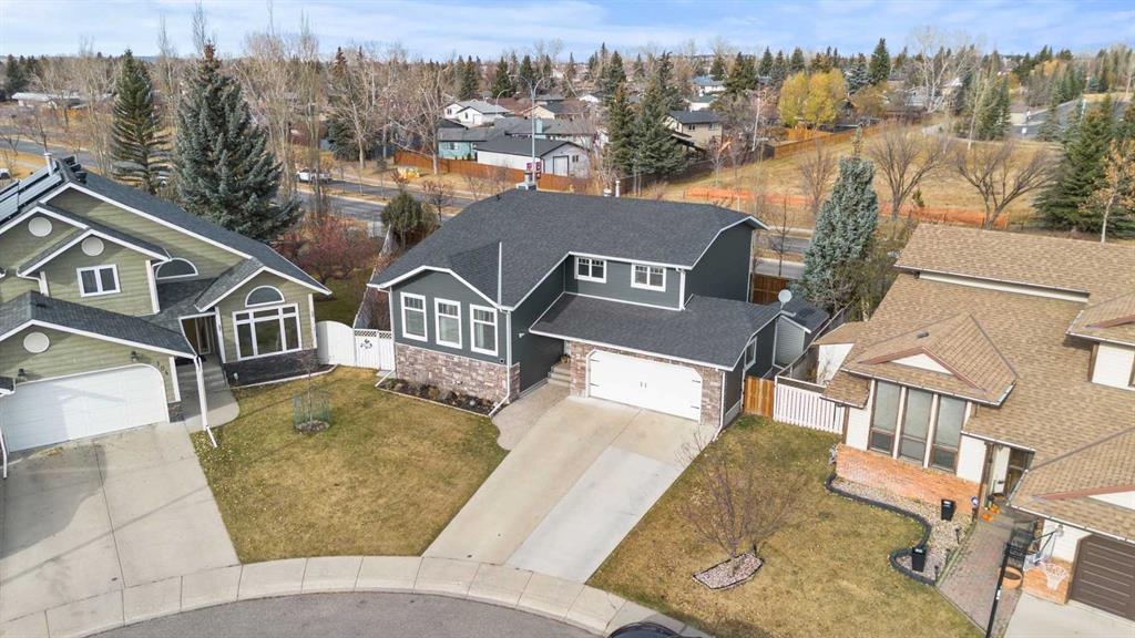 Looking for that special one that doesn’t come along very often? Tucked away on a quiet cul-de-sac in the desirable community of Downey Ridge, this beautifully UPDATED split-level home offers 4 bedroom and 2,150 square feet of pure charm with a unique, bright floorplan. You will love the new kitchen, renovated bathrooms, new carpets and paint, some new windows, new deck, new rear fence, rear stamped concrete pad, and full Hardie Board exterior! Enter into the living room where you will be impressed by the vaulted ceiling that creates an open, airy feeling, with large windows flooding the space with natural light. The beautiful hardwood floors are in impeccable shape and carry throughout the second and third levels. The new kitchen features custom cabinetry, quartz countertops, and upgraded appliances, opening onto a bright dining area that overlooks the main living room. The spacious primary suite is complete with a beautifully renovated ensuite and of course, a large walk-in closet. Two other bedrooms and remodeled bathroom round out this level. The lower-level family room offers a cozy retreat with a fireplace and wet bar– perfect for entertaining. Outside, you’ll love the large, private yard with mature trees, a new stamped concrete patio, new back fence and plenty of space to relax or entertain. The basement level is ready for development into another bedroom or flex area of your choice and, being a split level, has a TON of room for storage! As noted above, the exterior has been completely redone with new Hardie Board siding, giving the home a fresh, modern curb appeal. This location is one of Okotoks’ best—just a short walk to schools, the Okotoks Recreation Centre, parks, and pathways. With its thoughtful renovations, timeless character, and ideal family layout, this Downey Ridge gem is move-in ready and waiting to welcome you home!