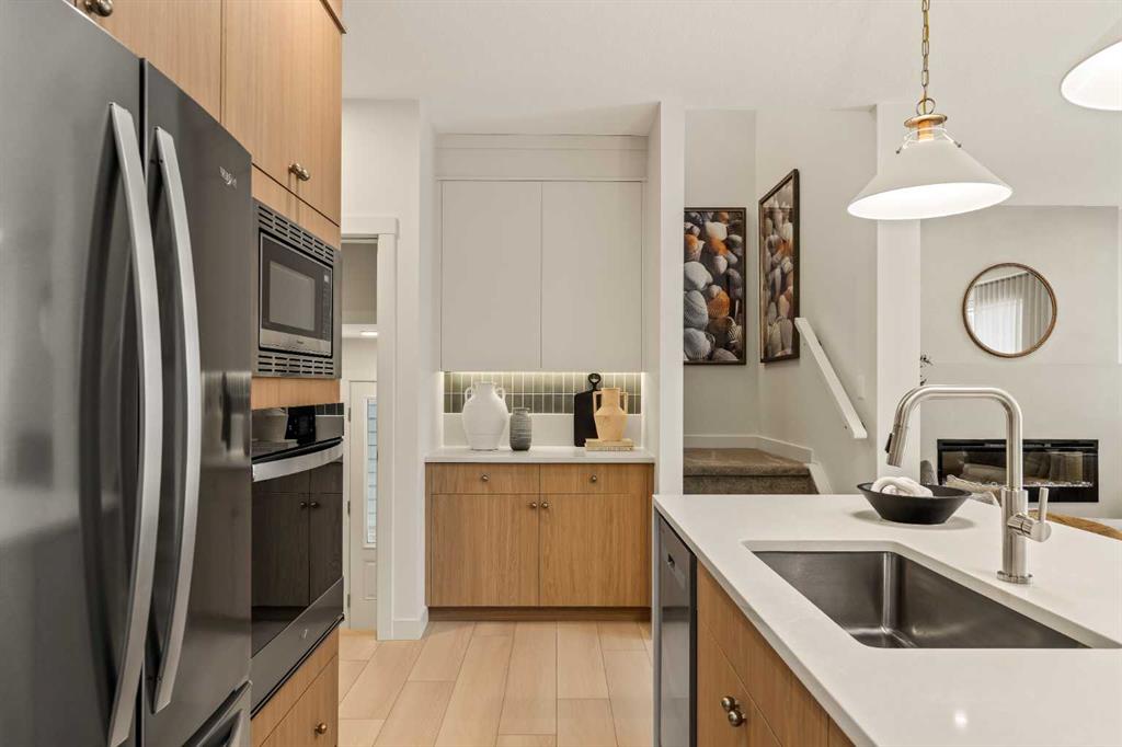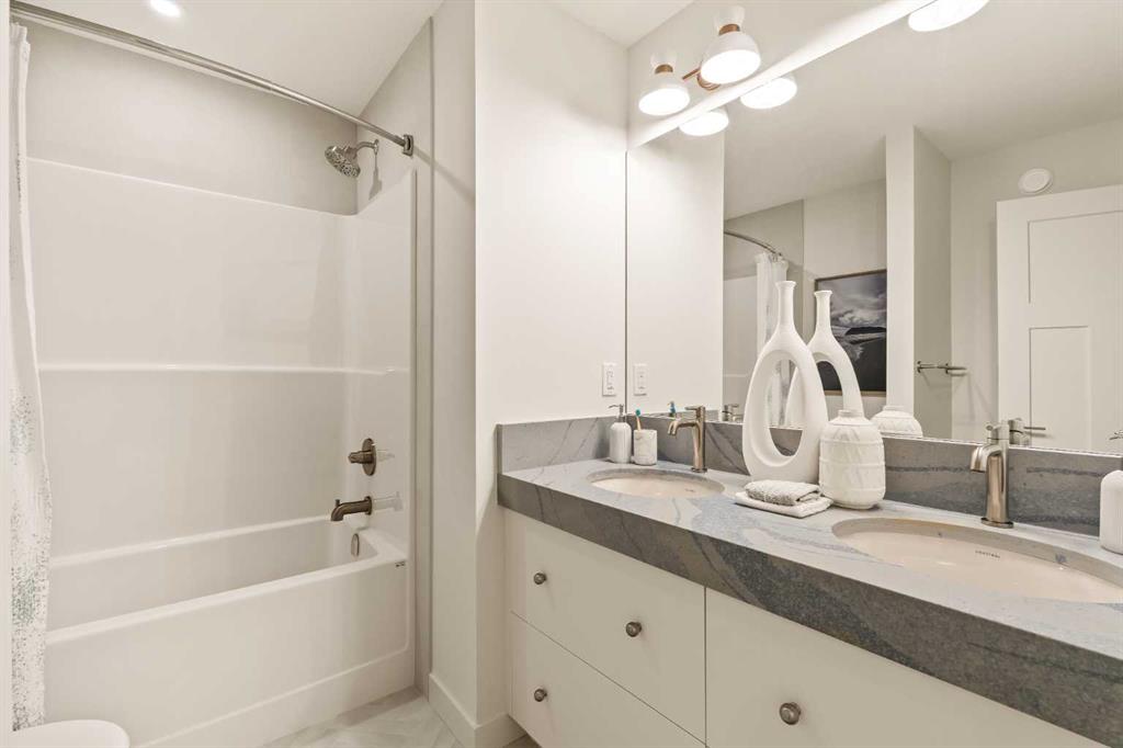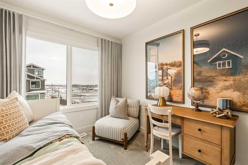 Welcome to 103 Silver Spruce Grove SW – a beautifully designed Amery 24 Farmhouse by Brookfield Residential, located in the sought-after community of Silver Spruce in Silverado. Offering over 2,200 sq. ft. of thoughtfully planned living space above grade, this 3-bedroom, 3.5-bathroom home delivers a perfect blend of modern design, everyday functionality, and exceptional flexibility. Step inside to a bright and inviting main floor, where the open-concept layout is designed for both comfortable living and effortless entertaining. At the heart of the home is a gourmet kitchen featuring full-height cabinetry, a chimney hood fan, electric cooktop with gas line rough-in, built-in oven, an upgraded refrigerator, and a stylish undermount Silgranit sink with a matte black faucet. A dedicated coffee bar adds both charm and convenience, while designer 3CM quartz countertops elevate the space throughout. The kitchen connects seamlessly to the dining and living areas, creating a natural flow for gatherings. A standout feature of the main floor is the versatile flex room paired with a full bathroom – ideal for guests, a home office, or multi-generational living as a fourth bedroom. A walk-through pantry from the mudroom and a convenient side entry add to the home’s thoughtful design. On the upper level, the layout is equally impressive with three spacious bedrooms, including dual primary suites – each offering its own private ensuite for added comfort and privacy. All bedrooms feature walk-in closets, providing ample storage throughout. An upper-level laundry room, complete with washer and dryer, adds everyday convenience. The undeveloped basement offers incredible potential, with rough-ins already in place for a future legal suite (subject to local municipality approvals). Whether you envision additional living space or an income-generating opportunity, this level is ready for your ideas. Outside, the home backs onto green space, providing added privacy and a peaceful setting to enjoy. A gas line to the BBQ makes outdoor entertaining easy, while the location near a playground adds to the family-friendly appeal. Nestled in the rolling hills of southwest Calgary, Silver Spruce offers a unique blend of natural beauty and modern convenience. With access to parks, pathways, nearby amenities, and the established community of Silverado, this is a place where comfort, connection, and lifestyle come together. *Please note: Property is under construction and photos are from a show home and may not reflect the exact finishes of the property for sale.
