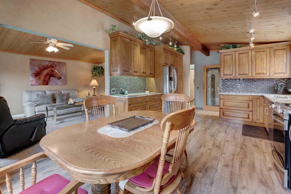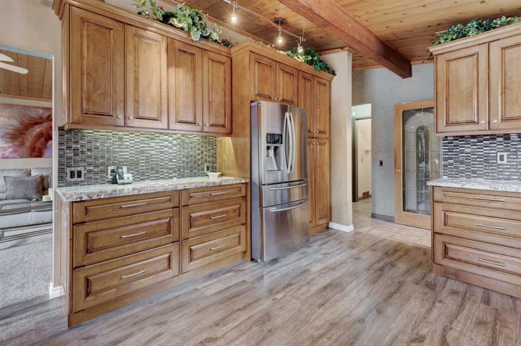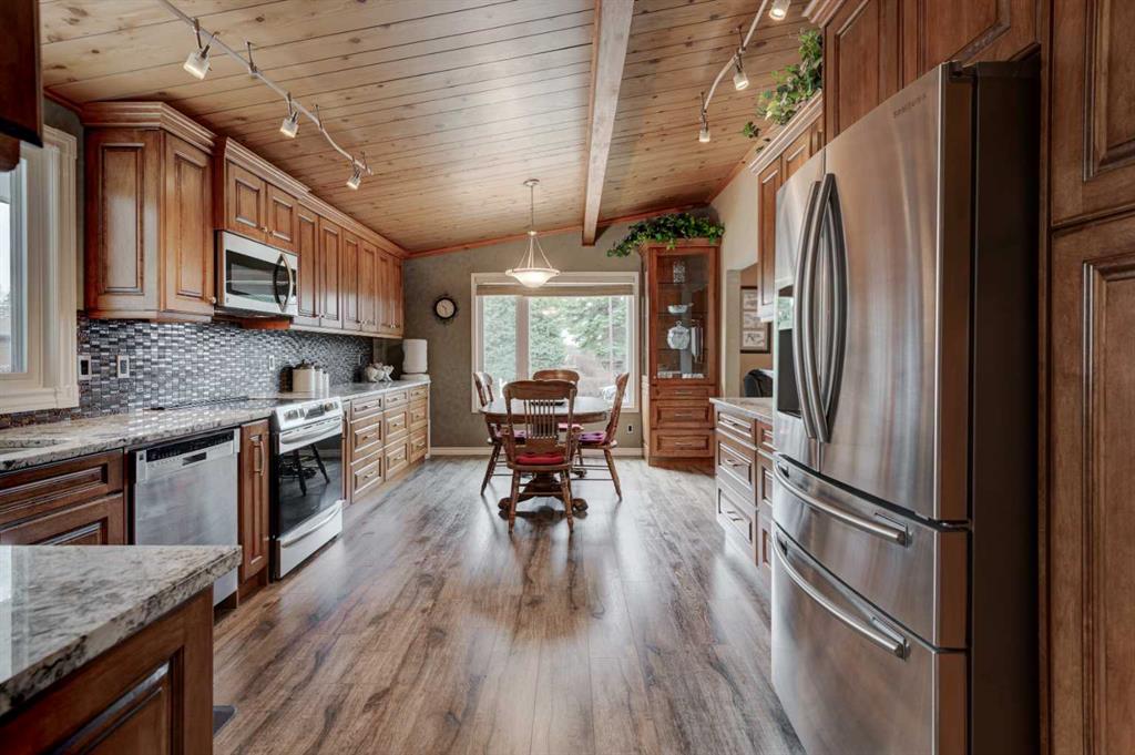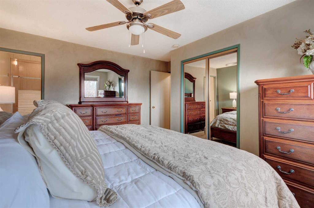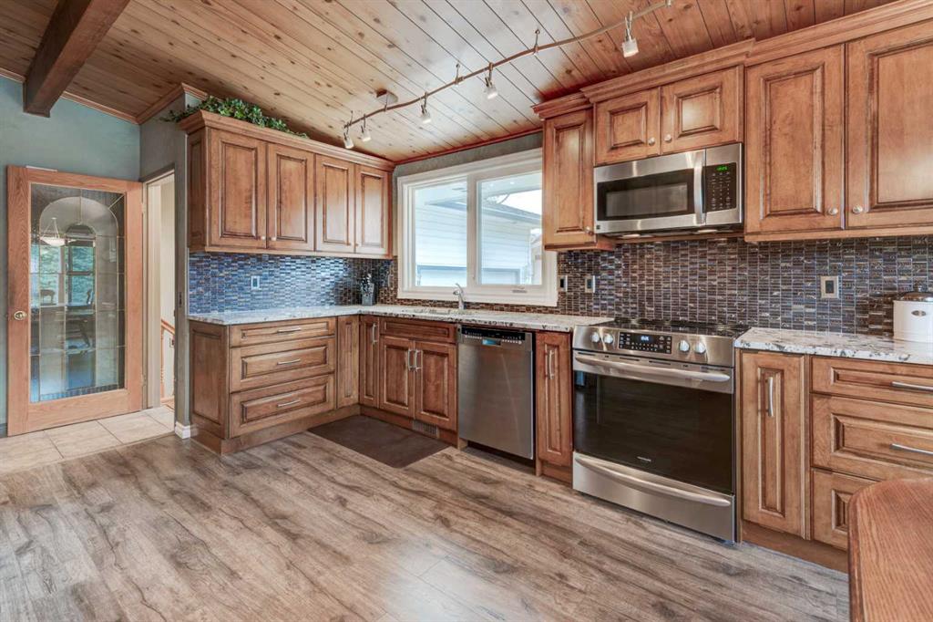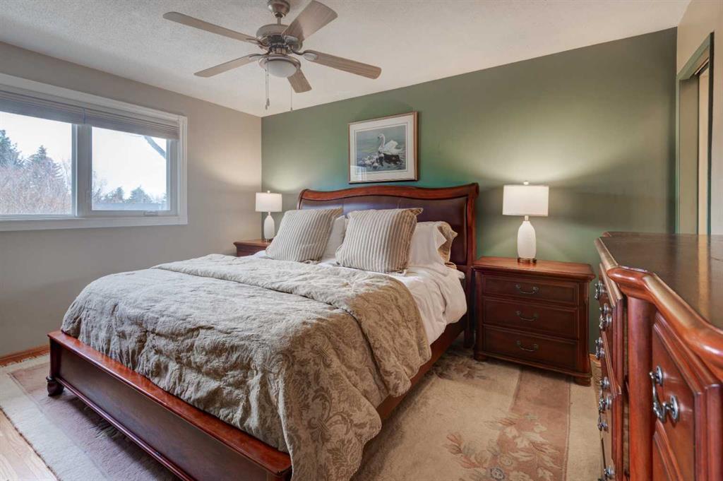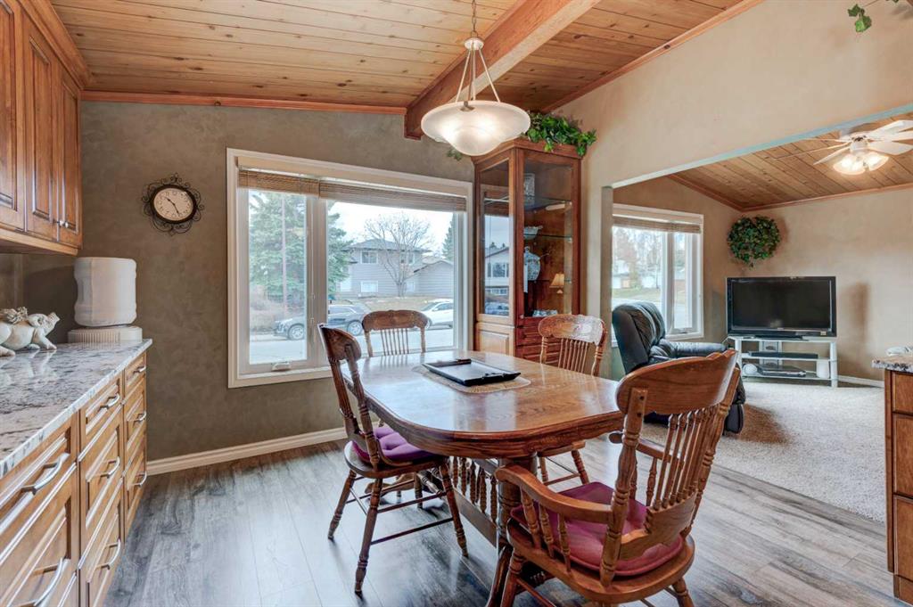 Welcome to the desirable community of Canyon Meadows, ideally located within walking distance to schools of all levels, the community pool, LRT, shopping, and more. This spacious bungalow offers over 1,370 sq ft on the main level and showcases pride of ownership with numerous updates over the years, including newer windows, lighting, kitchen, flooring, furnace, hot water tank, and a fully developed basement. The inviting open floor plan with vaulted ceilings features an updated kitchen with granite countertops, ample cabinetry, and generous counter space, flowing into the dining and living areas—perfect for everyday living and entertaining. The main floor offers four bedrooms, including a large primary suite with a 3-piece ensuite, along with a 4-piece main bathroom. The fully developed lower level adds even more living space with a rec room, additional bedroom, laundry area, storage, and a spacious utility room. Outside, enjoy a beautifully maintained exterior with an oversized single attached garage, a new deck (10’9″ x 23’9″), new eavestroughs with leaf guards, and a landscaped, fully fenced yard—this move-in-ready home is in a prime location, so book your private showing today!