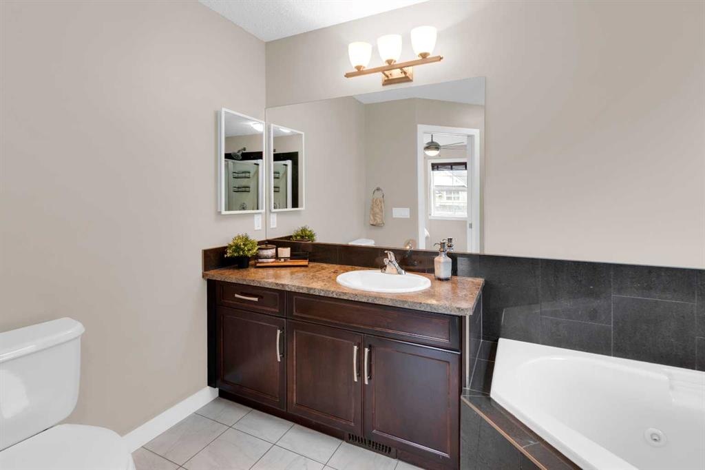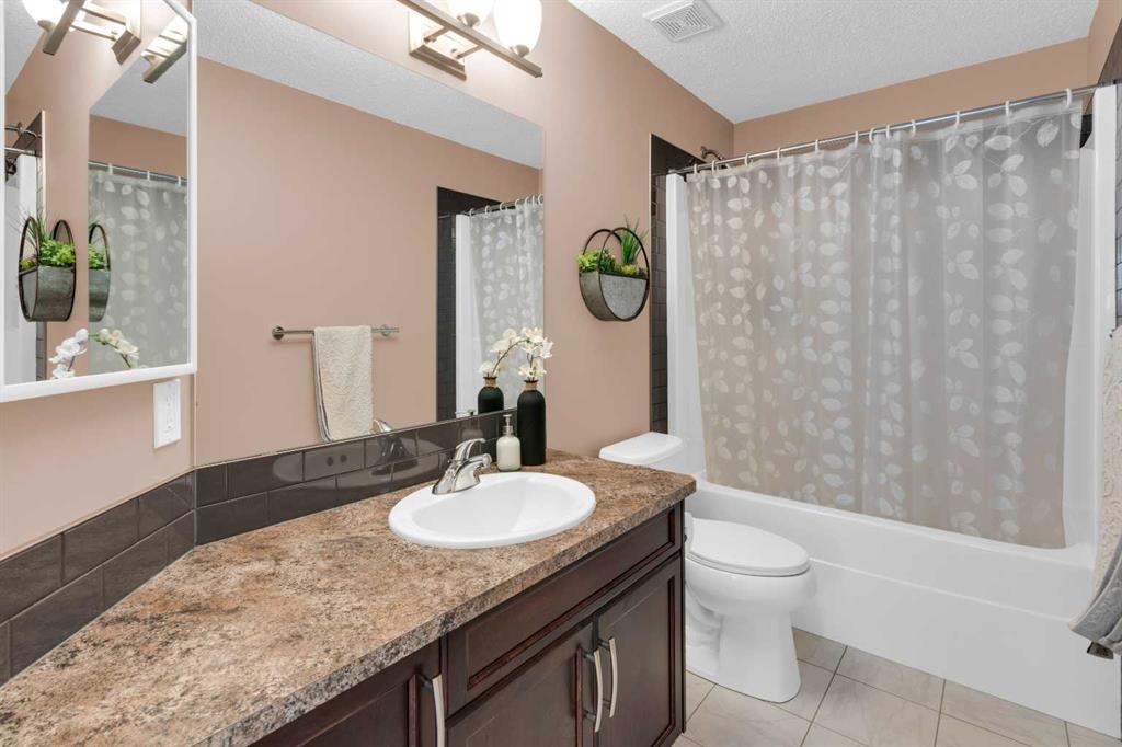 Upstairs offers three spacious bedrooms, including a large primary retreat measuring approximately 18′ x 13′, featuring a walk-in closet and a private 4-piece ensuite with jetted tub and separate shower. Two additional bedrooms (each over 140 sq ft), a full 4-piece main bathroom, and convenient upper-level laundry add to the functionality of this floor.