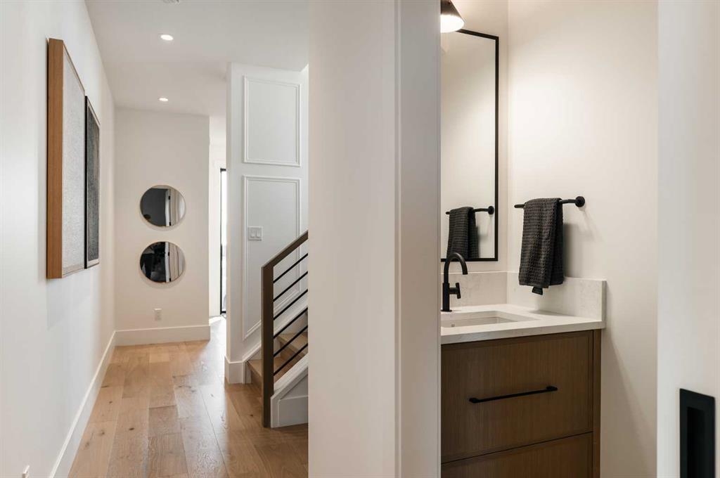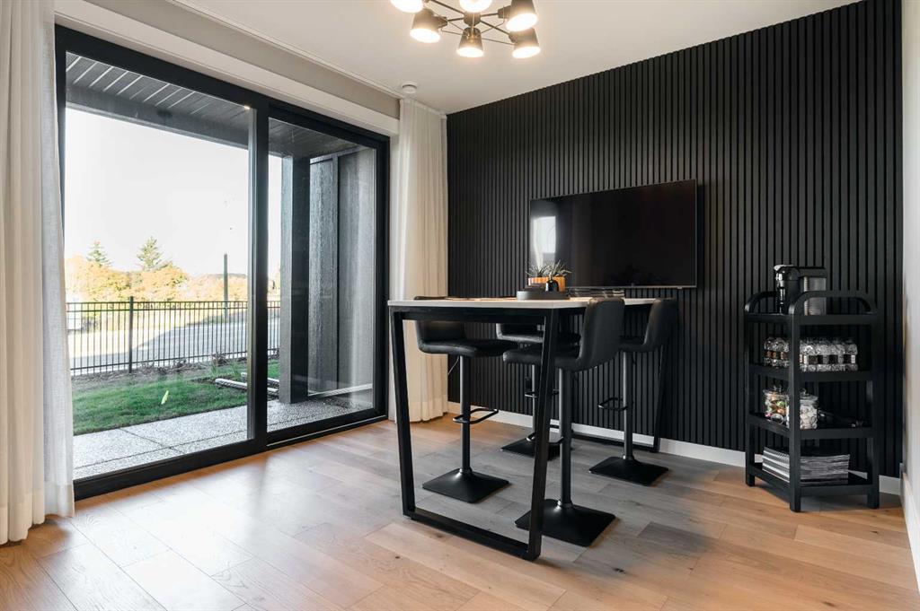 Nestled in the heart of Seventeen Hundred at Aspen Estates, this luxurious townhome with The Dalton floorplan (a design finalist with the 2025 BILD Calgary Awards) has been carefully crafted by RareBuilt Homes & offers over 2,700 sq ft of refined living space, complete with 3 bedrooms, amazing mountain views and exceptional design throughout. The airy main level with lofty 9’ ceilings, showcases luxury vinyl plank flooring, and expansive high end European triple glazed tilt & turn windows that flood the home with natural light. A spacious great room centers around a striking feature fireplace and opens to a large balcony with a louvered roof—perfect for year round enjoyment. A dedicated office space provides an ideal setting for work from home days. The beautifully appointed kitchen features quartz countertops, a generous island with eating bar, full height custom cabinetry, a walk in pantry, and a premium appliance package. The dining area comfortably accommodates gatherings with family and friends. A stylish 2 piece powder room completes the main level. Upstairs, the second level hosts three well proportioned bedrooms, a 4 piece bath, and convenient laundry facilities. The serene primary retreat with soaring vaulted ceiling includes a spacious walk in closet and a private 5 piece ensuite with in floor heat, dual sinks, a freestanding soaker tub, and a separate shower. The lower level offers impressive versatility with a large flex room and direct access to a walk out patio—ideal for a media room, fitness area, or family space. This level also includes a mudroom connecting to the fully finished & painted oversized double attached garage that’s EV charger ready. Additional highlights include central air conditioning, six solar panels, and concrete demising walls for enhanced privacy and noise reduction. Set within an exclusive complex spanning nearly 9 acres—5.5 of which are dedicated to green space—this residence delivers an unparalleled standard of comfort, quality, and sophisticated living.