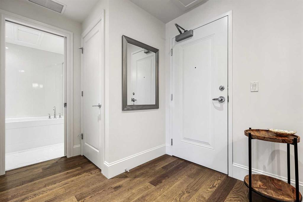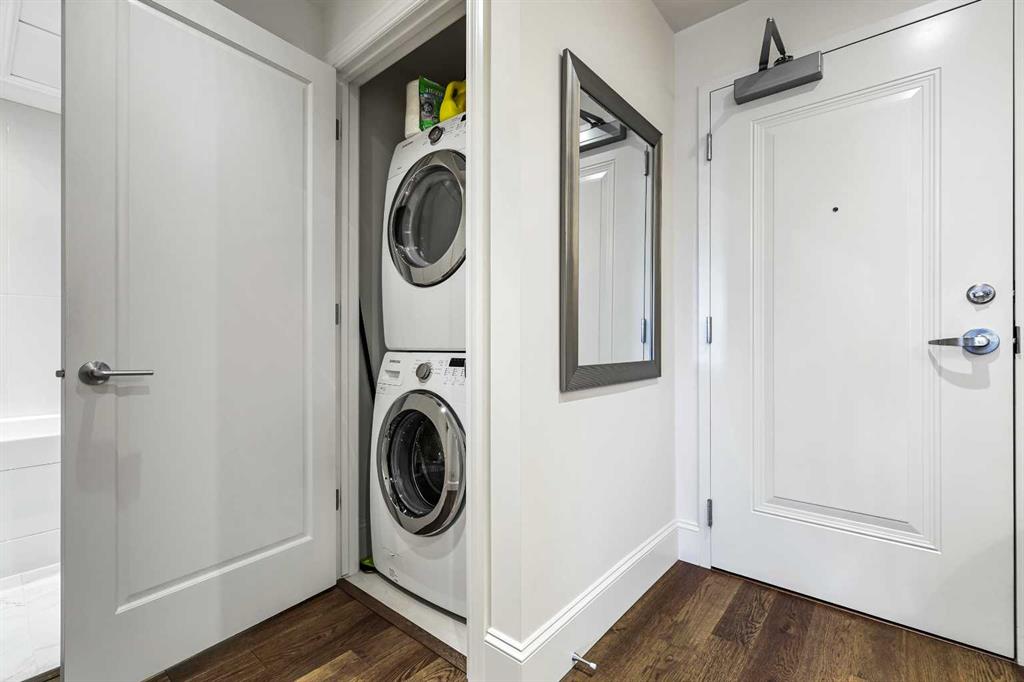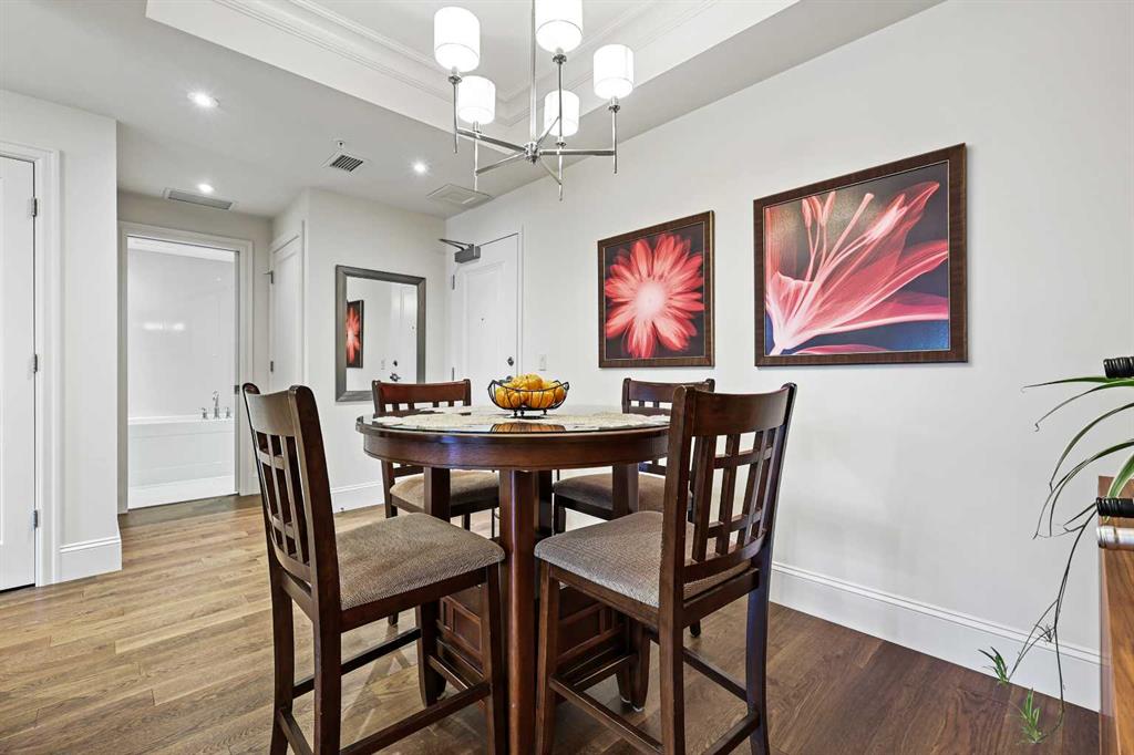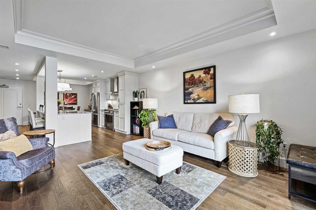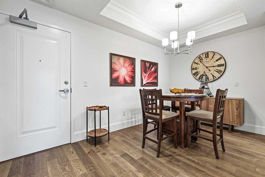 Welcome to Champagne in Quarry Park, where everyday living meets effortless style. This 1-bedroom, 1-bath condo offers a luxurious and inviting space in one of southeast Calgary’s most desirable communities. From the moment you walk into the building, you’ll notice the attention to detail—from the elegant lobby to the quality craftsmanship that carries through the entire home. Inside, the open layout feels bright and welcoming, with hardwood floors throughout the main living area, tall baseboards, and tray ceilings with crown moulding that add a touch of character. The central kitchen is both functional and stylish, featuring granite counters, a large island with seating, and stainless steel appliances, including a gas range—perfect for cooking and entertaining. On one side, there’s space for a dining table, while the living area on the other opens to sliding patio doors leading to your east-facing patio, where you can enjoy morning light and quiet outdoor time. The spacious bedroom includes a walk-through closet with doors and connects to a well-designed bathroom with a soaker tub and separate glass shower. There’s also a second entry to the bathroom from the main living area for convenience. The suite includes in-suite laundry with full-sized washer and dryer, plus titled underground parking and a storage unit. The heated parkade even has a car wash bay—a small luxury that makes a big difference in Calgary winters. Champagne is known for its solid concrete construction and timeless design, offering a peaceful and comfortable place to call home. The Quarry Park community is one of Calgary’s best-kept secrets, offering the perfect balance of city living and quiet convenience. You’re close to shops, restaurants, schools, and the Remington YMCA, and just steps from river pathways for walking or biking. Commuting is easy with quick access to Deerfoot Trail, Stoney Trail, and downtown. Whether you’re looking for a first home, a downsized lifestyle, or a low-maintenance place that still feels special, this Champagne condo delivers comfort, quality, and a great location—all wrapped up in a community you’ll love to come home to.