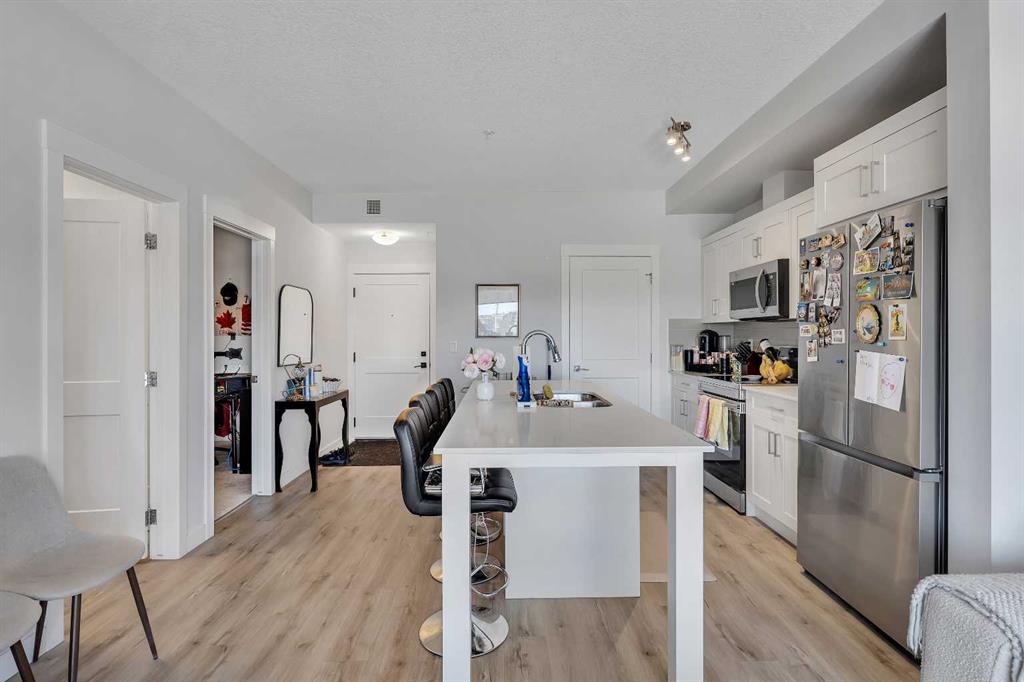 Quartz countertops and sleek cabinetry, Stainless steel appliances, Central island with eating bar, Luxury vinyl plank flooring throughout! The large window in the Primary bedroom along with a 4-piece ensuite as well as a good size spare room with 4-piece bathroom as well makes this a pleasant and convinient place to call it home.
