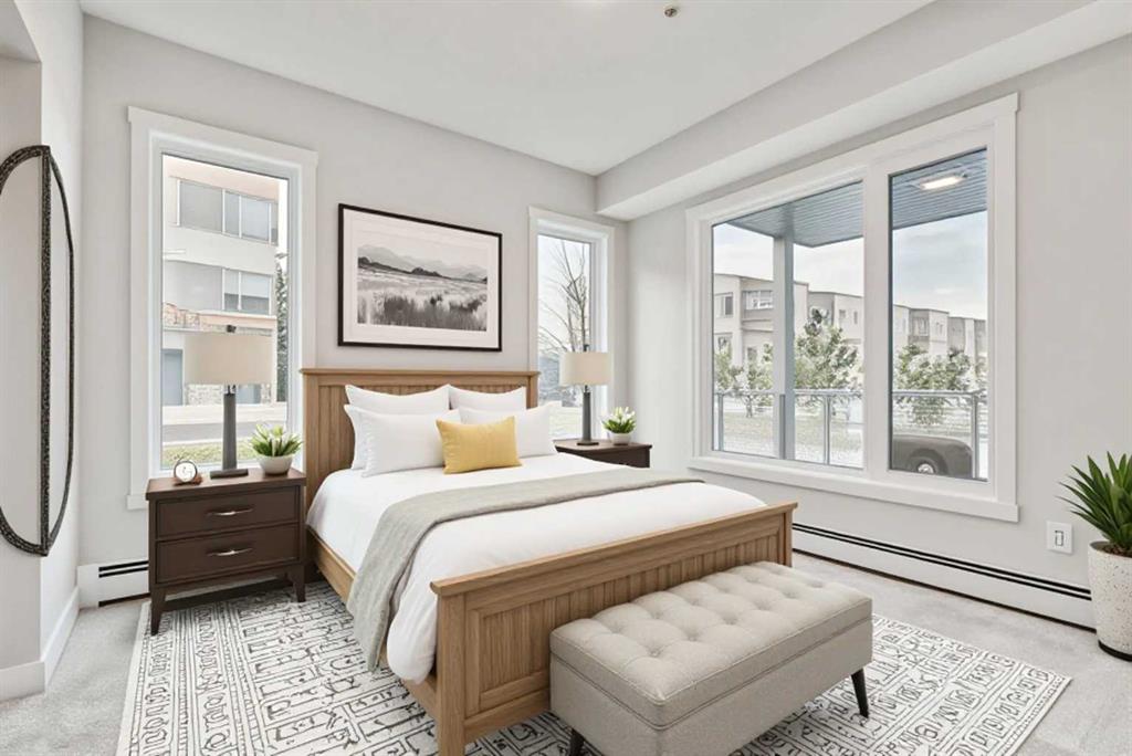 Welcome to your brand-new home in Shawnee Slopes, where modern design meets everyday comfort. This stylish 3-bedroom, 2-bathroom condo in the new Fish Creek Exchange development offers 922 sq. ft. (builder size) of smart, functional living space. Inside, you’ll find high ceilings, luxury vinyl plank flooring, and a beautifully designed kitchen with quartz countertops, full-height cabinetry, and stainless steel appliances — the kind of kitchen that makes cooking feel effortless. The open layout flows seamlessly into the private North West-ground floor facing balcony, a perfect spot to unwind with morning coffee, enjoy summer evenings, or take in Calgary’s signature sunsets. Every detail has been considered for convenience and ease, including titled underground parking and a secure storage cage. Located just steps from the Fish Creek–Lacombe LRT Station and minutes from Fish Creek Provincial Park, you’ll enjoy the best of both worlds — city connectivity and nature at your doorstep. Whether you’re a first-time buyer, an investor, or someone looking to simplify without compromise, this home offers a refreshing balance of style, function, and lifestyle in one of Calgary’s most sought-after communities.