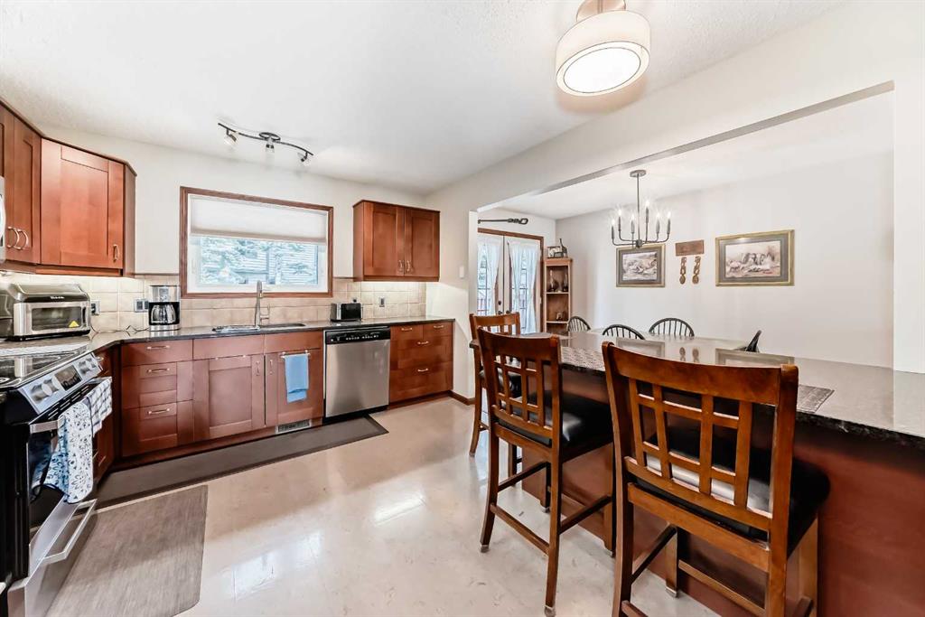 three spacious bedrooms, one ensuite and another 4 piece bathroom, providing both comfort and functionality. The layout flows effortlessly, delivering the ease and convenience that only a bungalow can offer. A double attached garage with direct interior access adds everyday practicality, while the full undeveloped basement — already roughed-in — presents exceptional future potential, allowing the next owner to design additional living space tailored to their lifestyle. Step outside to a fully fenced backyard oasis, offering privacy, sunshine, and ample space for relaxing, gardening, or hosting summer gatherings. Set in a quiet, highly desirable location, this property combines mountain views, generous space, meticulous upkeep, and the increasingly rare bungalow layout. Homes like this do not come to market often — a refined opportunity to enjoy comfortable living today with exciting potential for tomorrow.