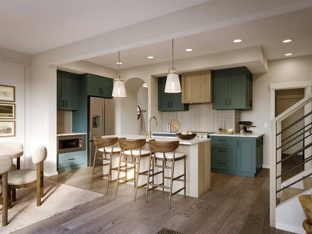 Welcome to the Liona by Hopewell Residential, a beautifully upgraded home in Calgary’s award-winning lake community of Mahogany, offering 1,835 sq. ft. of thoughtfully designed living space, 3 bedrooms, 2.5 bathrooms, and a stylish blend of comfort, function, and everyday luxury. From the moment you step inside, the home makes a memorable first impression with durable luxury vinyl plank flooring, modern matte black finishes, and a unique barrel archway connecting the foyer to the kitchen, adding a custom architectural detail that sets this home apart. The main floor is bright, open, and designed for real life, whether you are hosting friends, enjoying a quiet night in, or keeping an eye on the kids while dinner comes together. The upgraded kitchen is a true highlight, featuring quartz countertops, stainless steel appliances, a chimney hood fan, built-in microwave, kitchen pot lights, an upgraded Silgranite undermount sink, upgraded faucet, and a clean modern layout that feels both stylish and highly functional. The adjacent dining and lifestyle spaces offer an easy flow for entertaining, while the painted black spindle railing adds a polished designer touch to the main floor. Upstairs, you will find three good sized bedrooms, including a comfortable primary retreat with its own ensuite and upgraded matte black bathroom hardware. Quartz countertops continue throughout the home, creating a cohesive and elevated feel from top to bottom. Two additional bedrooms, a full bathroom, and thoughtful everyday storage complete the upper level, making this a great fit for families, professionals, or anyone looking for a smart and stylish floor plan. The basement offers excellent future potential with a 9’ foundation height, side entry, wet bar sink rough-in, and a simplified basement suite (a secondary suite would be subject to approval and permitting by the city/municipality) rough-in, giving you flexibility for future development, extended family, or potential added value down the road. Outside, the exterior BBQ gas line is ready for summer evenings and weekend cookouts, while the home’s location near green space, a playground, and future commercial services adds everyday convenience. Life in Mahogany is about more than just the home; it is about the lifestyle. As one of Calgary’s most sought-after lake communities, Mahogany offers four-season amenities including lake access, beaches, pathways, parks, playgrounds, wetlands, and the vibrant Mahogany Village area with shops, restaurants, services, and everyday conveniences close by. Whether it is paddleboarding in the summer, skating in the winter, walking the pathways, or meeting friends for dinner nearby, Mahogany delivers a connected, active, and family-friendly lifestyle that continues to make it one of Calgary’s most desirable communities. **Photos are from the show home/previous builds to demonstrate quality of construction & finishes and may not be an exact representation of this home**
