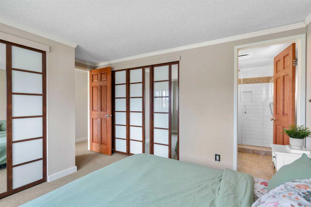 Welcome to this beautifully maintained two-storey home, ideally situated on a quiet, tree lined street in the highly sought after lake community of Midnapore. Offering over 1,780 sq ft above grade, 5 bedrooms, and 2.5 bathrooms, this home blends timeless character with thoughtful updates, and includes year-round lake access. Step inside to discover a bright and inviting front living room, where large windows fill the space with natural light. The heart of the home is the beautifully updated kitchen, featuring an abundance of custom cabinetry, stainless steel appliances, under-cabinet lighting, tile backsplash, stylish open shelving, space for your coffee bar, and a toe kick crumb catcher. The kitchen flows seamlessly into the dining area, complete with built-in features and a large window overlooking the space. At the rear of the home, a second living room offers a cozy retreat with a wood-burning fireplace, and classic wall panelling, perfect for relaxing evenings or easily reimagined as a formal dining space. A convenient 2 piece bathroom and a spacious pantry/storage room with 240V hookup complete the main level. Upstairs, you’ll find four generously sized bedrooms, including a bright primary suite with its own modern 3 piece ensuite. A full 4 piece bathroom serves the additional bedrooms, and newer upstairs windows throughout the home allow natural light to pour in from every angle. The fully developed basement expands your living space with a fifth bedroom (not an egress window), a large family room featuring a gas fireplace, and a versatile open area, ideal for a home gym, office, or flex space. Additional storage ensures everything has its place, plus laundry area with storage and workshop area for added functionality. Step outside into your sunny south facing backyard oasis, complete with extensive brickwork, mature landscaping, vibrant flowers, and a private setting perfect for relaxing or entertaining. The yard also offers a storage shed and access to the double detached garage. At the front of the home, a charming interlocking brick patio creates a welcoming first impression. Access to the pathway leading to Fish Creek Park is just steps away, so you can escape the city without leaving it. Located in one of Calgary’s most established lake communities, Midnapore offers exclusive lake access, year-round recreation, excellent schools, parks, and convenient access to shopping and transit. This is a rare opportunity to own a character-filled home in an unbeatable location!