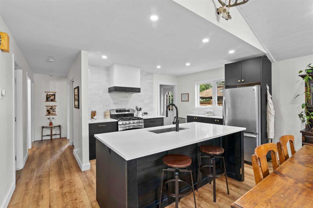 3-BED | 2.5 BATH | 2,292 TOTAL SQ.FT. | FULLY RENOVATED | FINISHED BASEMENT | Welcome to this beautifully RENOVATED, modern farmhouse bungalow offering over 2,100 sq/ft of developed living space, nestled on a QUIET STREET in Tower Hill. The fully REMODELLED KITCHEN features quartz countertops, stainless steel appliances, a massive central island, and a custom hood fan. The open-concept layout connects the kitchen to the spacious dining area, perfect for hosting a large table. The bright living room is filled with NATURAL LIGHT from the impressive vaulted, floor-to-ceiling front window. Enjoy cozy nights by the WOOD-BURNING FIREPLACE, complete with a custom wood mantle and tile surround. The master bedroom easily fits a king-sized bed and includes a recently updated en-suite. The main level boasts WIDE PLANK HARDWOOD floors, while modern tile enhances the bathrooms. The FULLY FINISHED BASEMENT includes a renovated 4-piece bath, an office, AMPLE STORAGE, and a large entertainment room with a wet bar and second fridge. Other updates include a NEW HOT WATER TANK and NEW WASHER & DRYER. Outside, the recycled asphalt driveway leads to a large shaded deck and spacious backyard with a firepit, perfect for outdoor living. This home is within walking distance of the Rec Center, Splash Park, schools, and pathways, with easy access to Calgary’s main routes. This charming family home won’t last long. Book a showing today before it’s too late.
