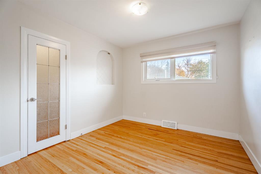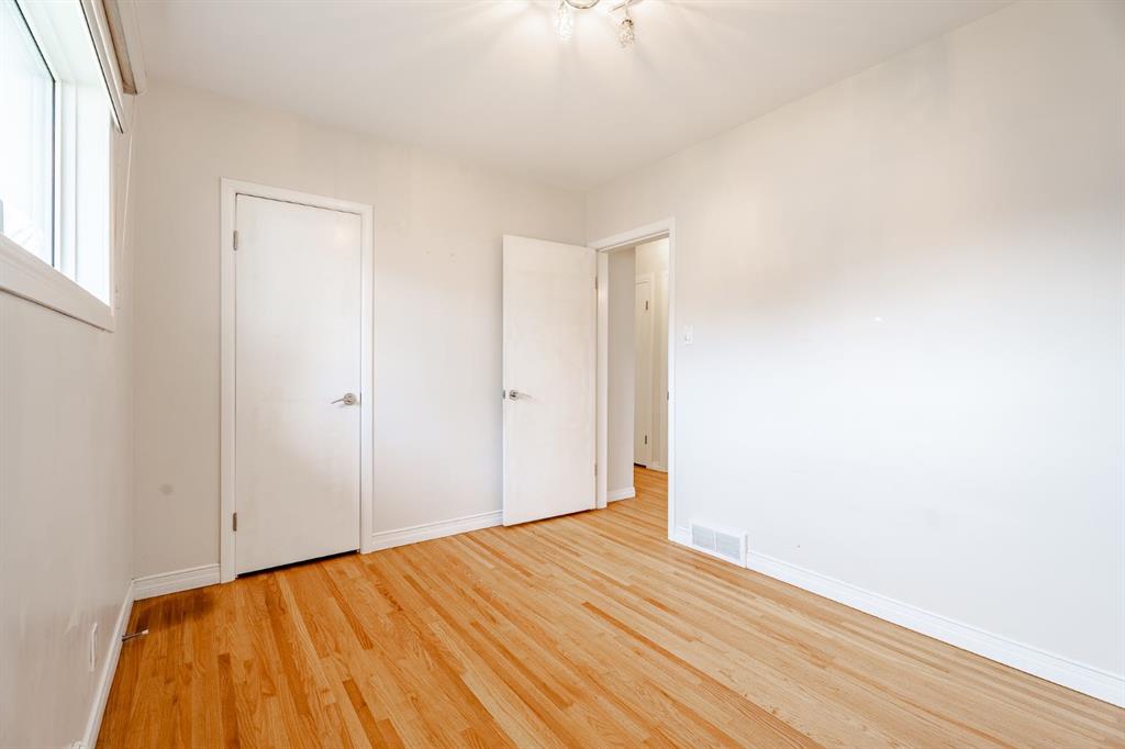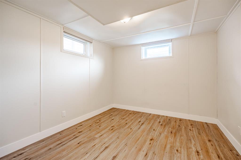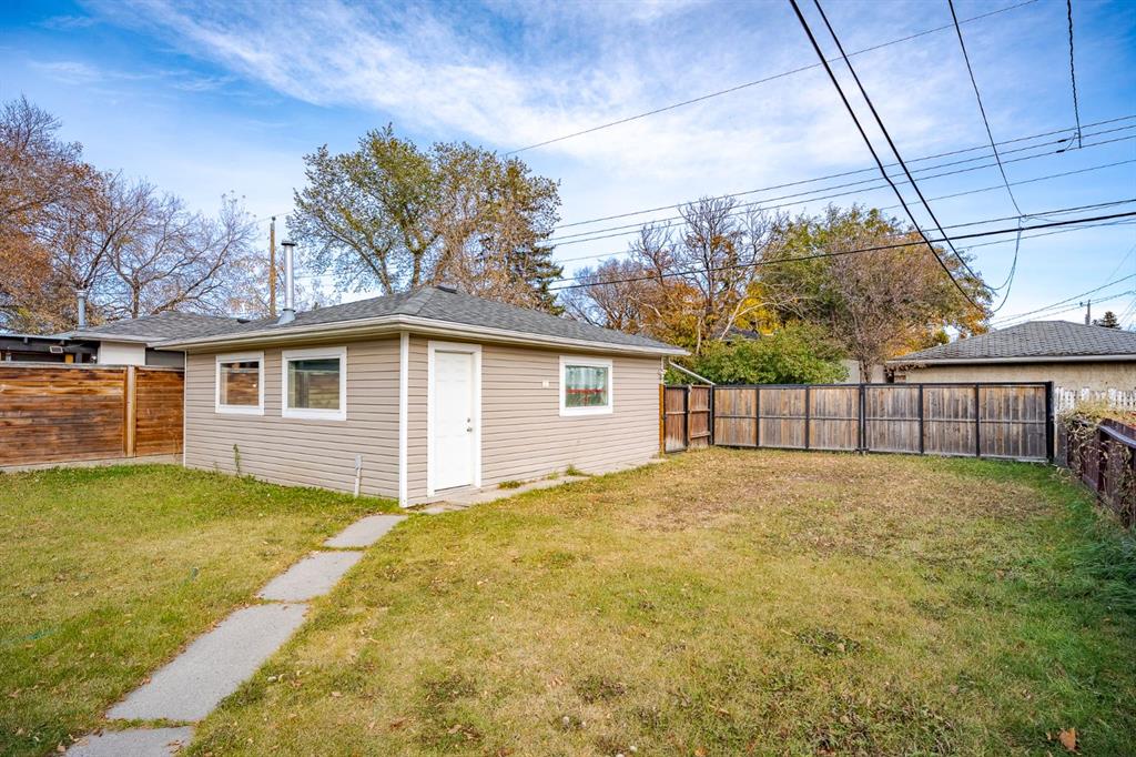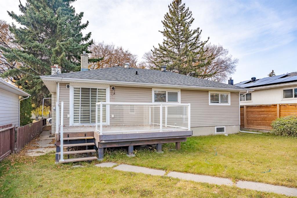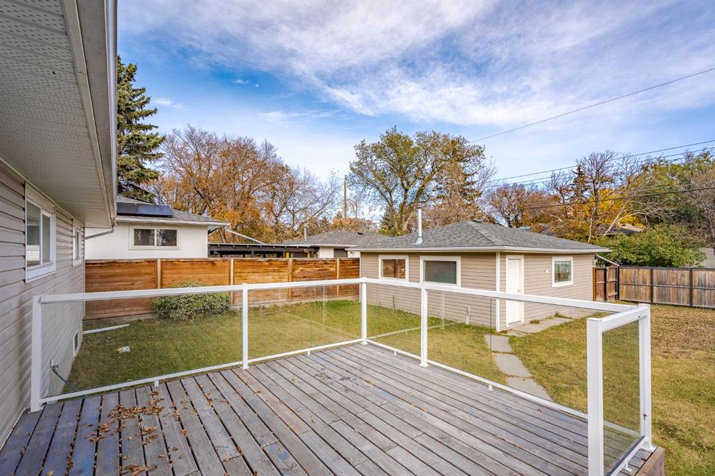 This nicely updated 5-bedroom, 2-bath bungalow sits on a 50′ x 120′ RC-G lot on one of the quietest, most charming streets in Mayland Heights. Offering 1,059 sq. ft. of living space above grade, this home has seen numerous updates over the years, including a new roof, windows, furnace, a 55 gallon hot water tank, vinyl siding, rear deck with glass railing, and electrical panel (2017). Enjoy the massive yard with a 24.5′ x 23′ insulated garage and a steel-frame fence with a wide opening for full vehicle access—perfect for additional parking or recreational use. Inside, the main floor features refinished hardwood floors, a bright and spacious living room, a functional eat-in kitchen with brand new appliances, three bedrooms, and a 4-piece bath. Step out from the kitchen to the expansive back deck and private yard—ideal for entertaining or family gatherings. The lower level offers an illegal suite, great flexibility with a separate side entrance and separation doors. It includes new luxury vinyl plank flooring, a large recreation and entertainment area, two generous bedrooms with egress windows, a 3-piece bath with a walk-in shower, and a full laundry area. Recent updates also include fresh paint throughout (walls, doors, baseboards, and trim) and a brand new washer and dryer. With its simple potential for a future legal suite, this property is a fantastic opportunity for investors, multi-generational families, or anyone looking for a turnkey home just minutes from downtown and within walking distance to schools, parks, and pathways.