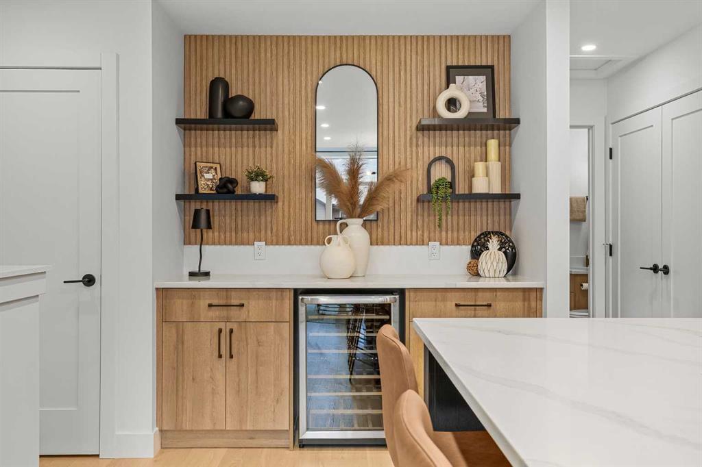 An open, vaulted living area sets the tone with a striking Rundle-stone fireplace, perfect for cozy evenings after a day on the trails. The spacious kitchen invites gathering and connection, complete with generous prep space and a dedicated coffee/wine bar to elevate mornings and unwind at night.