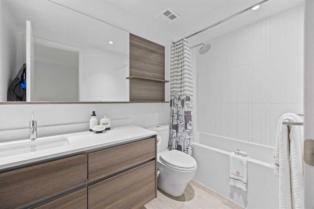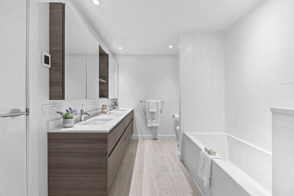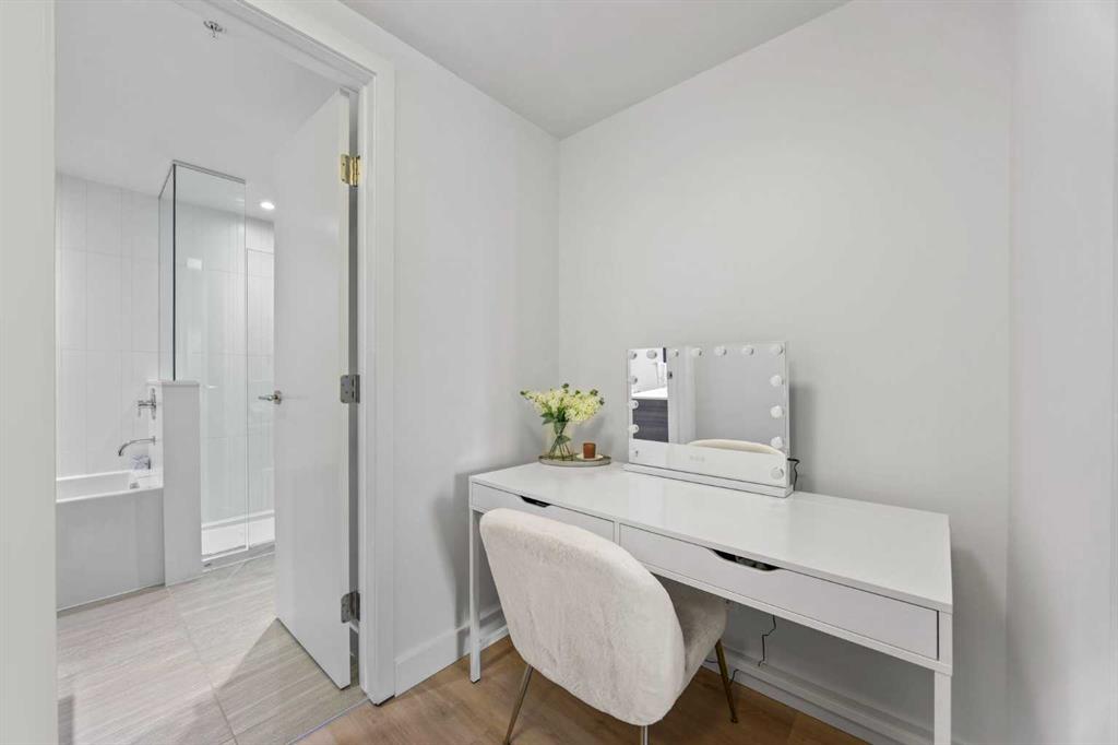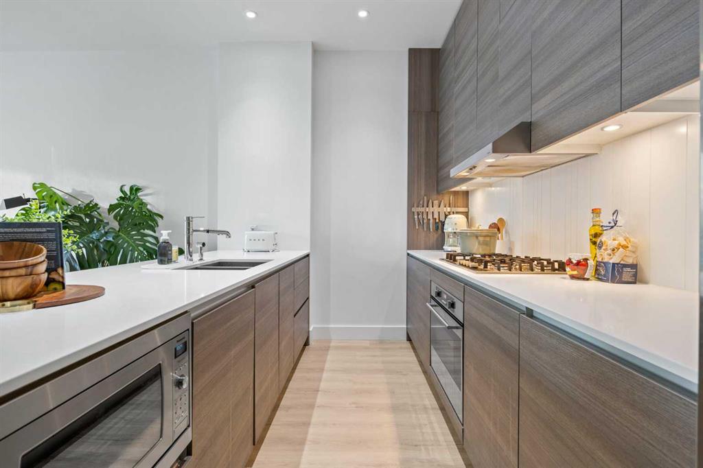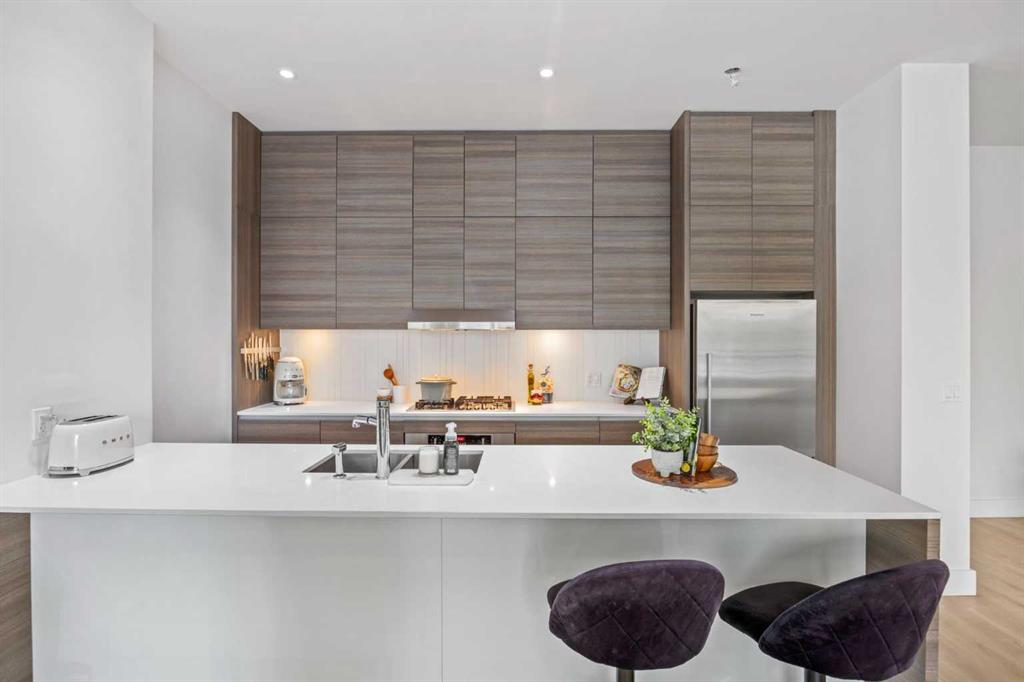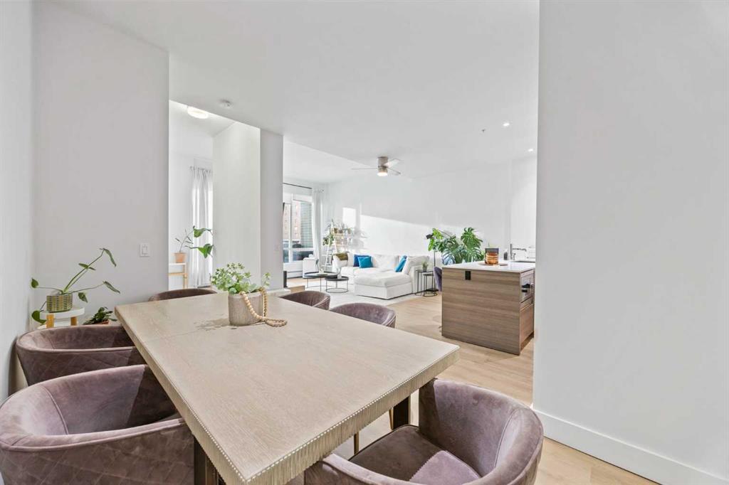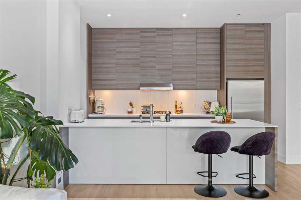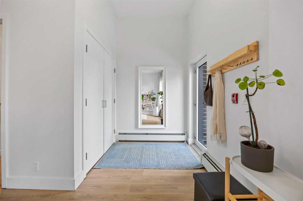 Discover a one-of-a-kind urban retreat in the heart of Calgary’s vibrant Beltline, just steps from countless premier shops, services, restaurants, cafés, and all the energy of inner-city living! This 2 storey unit features its own private, exterior entrance, welcoming you into a space defined by soaring high ceilings that create an immediate sense of openness, grandeur, and comfort. The open concept main living area is designed for effortless entertaining. The modern kitchen is equipped with stainless steel appliances, full-height cabinetry, ample storage, generous counter space, and a large island with seating for four. Adjacent you have the spacious dining area with access to a cleverly designed storage space beneath the stairs, complete with built-in cabinets ideal for pantry use, a huge perk for condo living. Throughout the home, you’ll find new vinyl plank flooring for easy, low-maintenance living, complemented by new 6″ baseboards for a clean, contemporary finish. Additional upgrades include fresh paint, a new washer and dryer, and two wall-mounted AC units to keep you comfortable year round. Upstairs, you’ll find the laundry room, complete with shelving and a stacked washer and dryer for maximum convenience. The primary bedroom is a true retreat, offering large windows and even enough room for a writing desk or vanity. It features a walk-in closet with built-ins and a luxurious 5-piece ensuite complete with a double vanity, generous counter space and storage cabinets, a soaker tub, a frameless stand-up shower, and a linen closet. The second bedroom is a great size and enjoys easy access to the second bathroom, finished with the same upscale features found throughout the home. This upper level also connects directly to the main building, where you’ll find a party room and access to the parkade. And the standout feature? This stunning unit includes its own PRIVATE, DOUBLE GARAGE with its own private storage unit, a rare offering that delivers convenience, security, and additional space you won’t find elsewhere. The building also offers concierge service for added comfort. With large windows, plenty of natural light, modern upgrades, and a truly unbeatable location, this exceptional Beltline home is bright, stylish, and move-in ready!