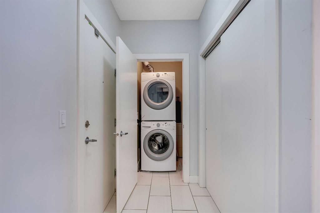 Welcome to 320 12 Ave NE. A bright 1 bed / 1 bath condo with easy downtown access and a functional open-concept layout. The kitchen features granite countertops with breakfast bar and tile flooring, flowing into a good-sized dining area and comfortable living space. Step outside through the living room door to enjoy an oversized, private, secure patio. The bedroom includes a walk-in closet. In-suite laundry and an assigned underground parking stall complete this unit. This complex is pet friendly with no size restrictions and is steps to transit and has good access to 16 Avenue NE!