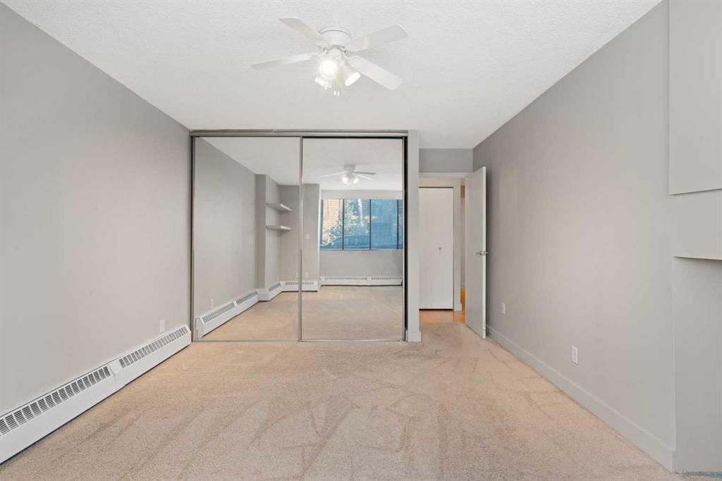 Larger than your typical one-bedroom, and it shows. Welcome to this spacious 783 sqft condo in the heart of Crescent Heights, offering a rare combination of size, comfort, and unbeatable inner-city walkability. From the moment you step inside, you’ll appreciate the open-concept layout and natural light that fills the living space. The living room is anchored by a feature fireplace with an electric insert, creating a warm focal point, and opens directly onto your oversized private patio. Framed by a stone privacy wall and tucked along an exceptionally quiet street, this outdoor space feels more like an extension of your living room, with plenty of room for a BBQ, full patio furniture, and morning coffee. The kitchen is both functional and inviting, complete with granite countertops, generous cabinetry, and mostly updated appliances. (The wall oven isn’t new, but it’s reliable, durable and works beautifully.) The layout flows seamlessly into the dining area, making the space ideal for entertaining or everyday comfort. The bedroom is truly oversized, offering enough room for a king-sized bed plus a desk, reading nook, or sitting area by the windows. This room is also equipped with a door to the patio. Even better? The windows are scheduled to be replaced in the coming months, adding additional value and efficiency for the future owner. A cleverly designed walk-through closet connects the bedroom to the spacious bathroom, offering convenient dual access and thoughtful functionality. There’s also room in the bathroom to personalize or upgrade over time if desired. Additional highlights include in-suite laundry with extra storage, modern laminate flooring, and an underground assigned parking stall with the ability to add a storage cage. And let’s talk about the main-floor advantage, no waiting for elevators, easy grocery drop-offs, simple pet access, and a seamless indoor-outdoor lifestyle. For many buyers, this is a major win. It is also important to note that the building is extremely secure and that the unit is soundproof – no noise transfer from other units! All of this just steps from downtown, the Bow River pathways, restaurants, cafés, and shops, in one of Calgary’s most desirable inner-city communities. This isn’t just a one-bedroom. It’s a spacious, smart inner-city home.