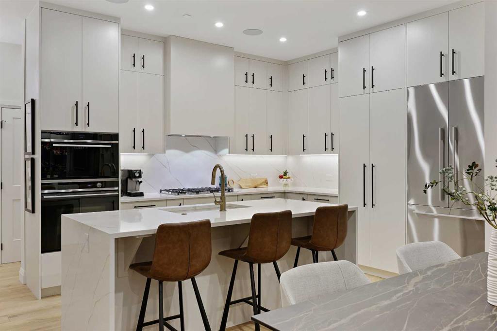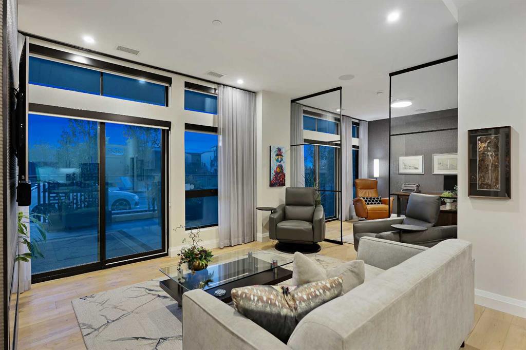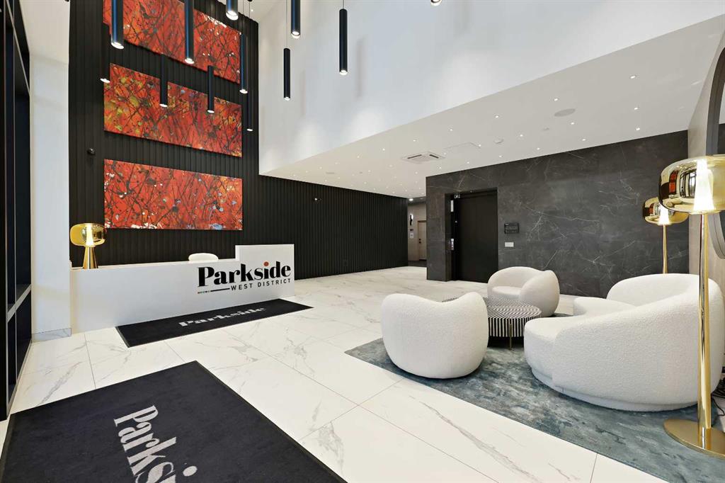 Residents of this exclusive concrete building enjoy luxury amenities including 2 underground heated parked stalls, EV charging station, car wash, expansive rooftop patio with lounge seating, fireplaces, and panoramic views of Calgary, a fully equipped gym, and a stunning owners lounge perfect for hosting private parties. Located in the vibrant West District, this property is walking distance to many restaurants, shops, and is directly across from a tree lined park with walking paths and a water feature which becomes a skating rink in the winter months. This home truly does not miss a beat: Luxury and exclusivity all while offering a maintenance free lifestyle with a prime location.