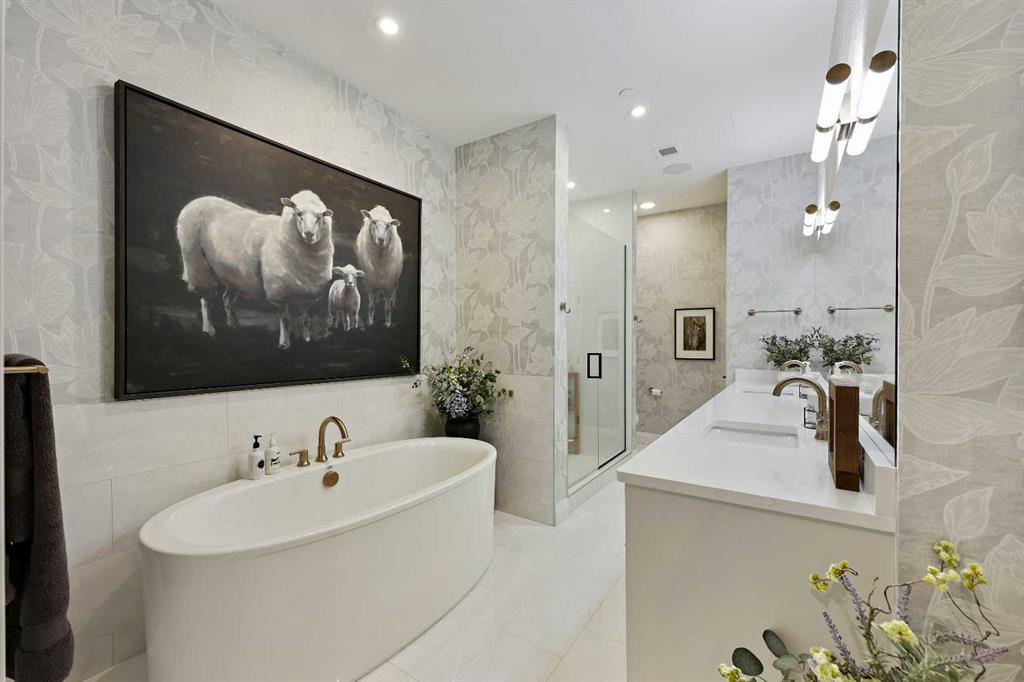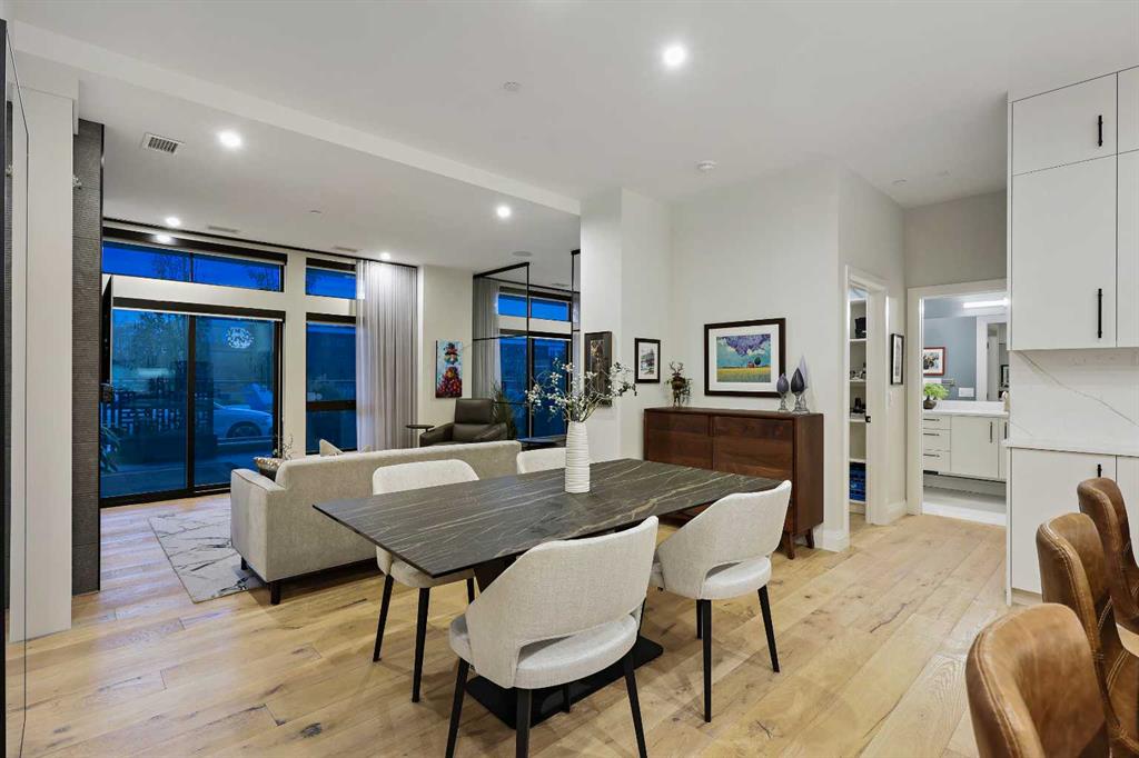 Your opportunity to experience maintenance free elevated living in the sought after West District awaits. This meticulously designed 2 Bedroom + Den residence will have you in awe from the moment you enter – boasting over 1400 square feet of interior living space and over 400 square feet of outdoor private patio, this park facing unit truly does not miss. As you enter the unit you will immediately notice the large closets offering you plenty of storage space, an in suite laundry room, and the open concept functional layout. The quality of this home is apparent from the custom millwork, the hardwood floors, and the expansive floor to ceiling windows – allowing natural light to beam through the home (all complete with custom window coverings). The chef’s kitchen with its stunning waterfall island, full height custom cabinetry and a professional grade gas cooktop is an absolute show stopper. The Primary space is a true retreat, with beautiful windows, a custom feature wall, spacious walk-in closet and a spa like en-suite bathroom with its own soaker tub, dual vanities and a luxurious walk-in shower. The second bedroom is spacious with its own walk-in closet and additional bathroom, and the custom glass partitioned office offers a dedicated workspace while maintain the airy open concept.