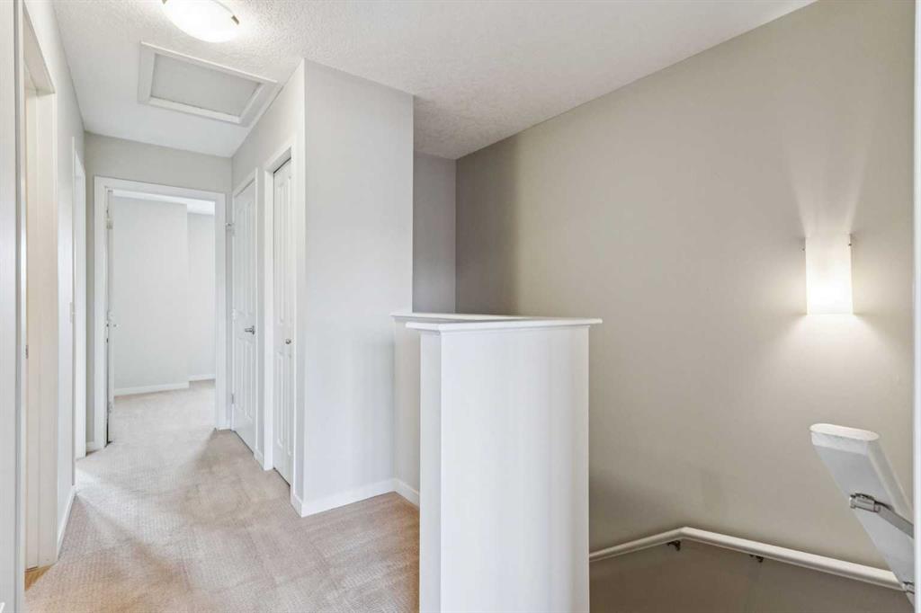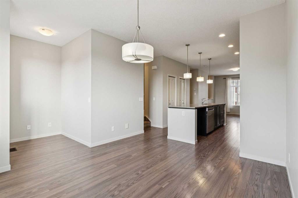 Welcome to this beautiful 3-bedroom, 2.5-bathroom townhome with an attached garage. This bright home features an open-concept main floor with laminate flooring, quartz kitchen countertops, espresso maple cabinetry, a subway tile backsplash, and a large kitchen island accented by stylish pendant lighting. The living room offers plenty of room to relax, while the adjacent dining area includes a versatile flex space—perfect for a home office, reading nook, or hutch. The upper floor has been freshly repainted throughout, giving the bedrooms and hallway a clean, updated feel. The main floor and lower level have also received touch-ups, and the carpets have been professionally cleaned, ensuring the home feels refreshed and move-in ready. Upstairs, you’ll find three comfortable bedrooms, including a primary suite with a walk-in closet and its own private bathroom. The lower level provides generous storage and the potential to develop additional living space if desired. Enjoy the convenience of an attached garage—especially during winter months—plus a driveway for a second vehicle. This well-located townhome is close to parks and playgrounds, schools, shopping, and transit, with quick access to 130th Avenue, Deerfoot Trail, and Stoney Trail. A wonderful opportunity in Copperfield—book your viewing today!