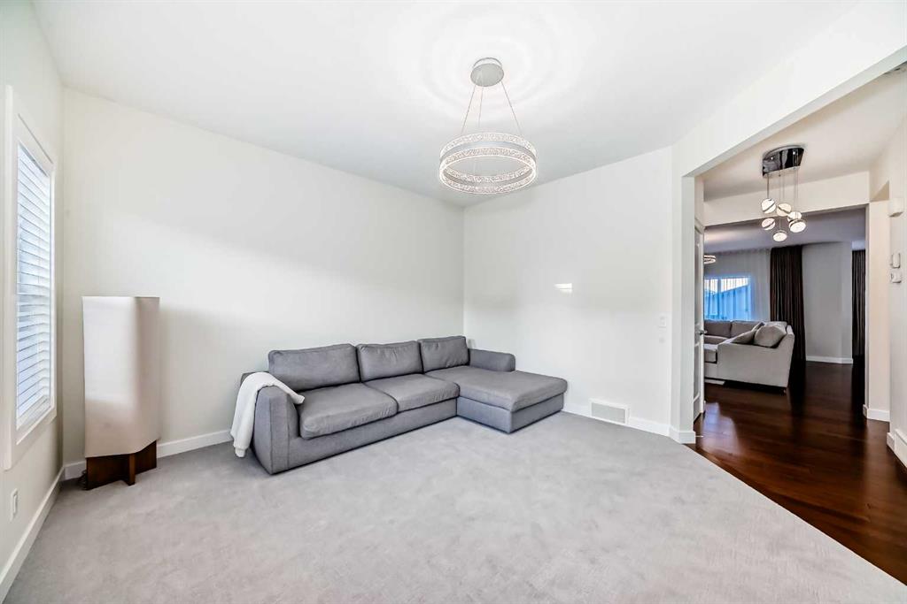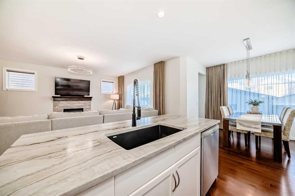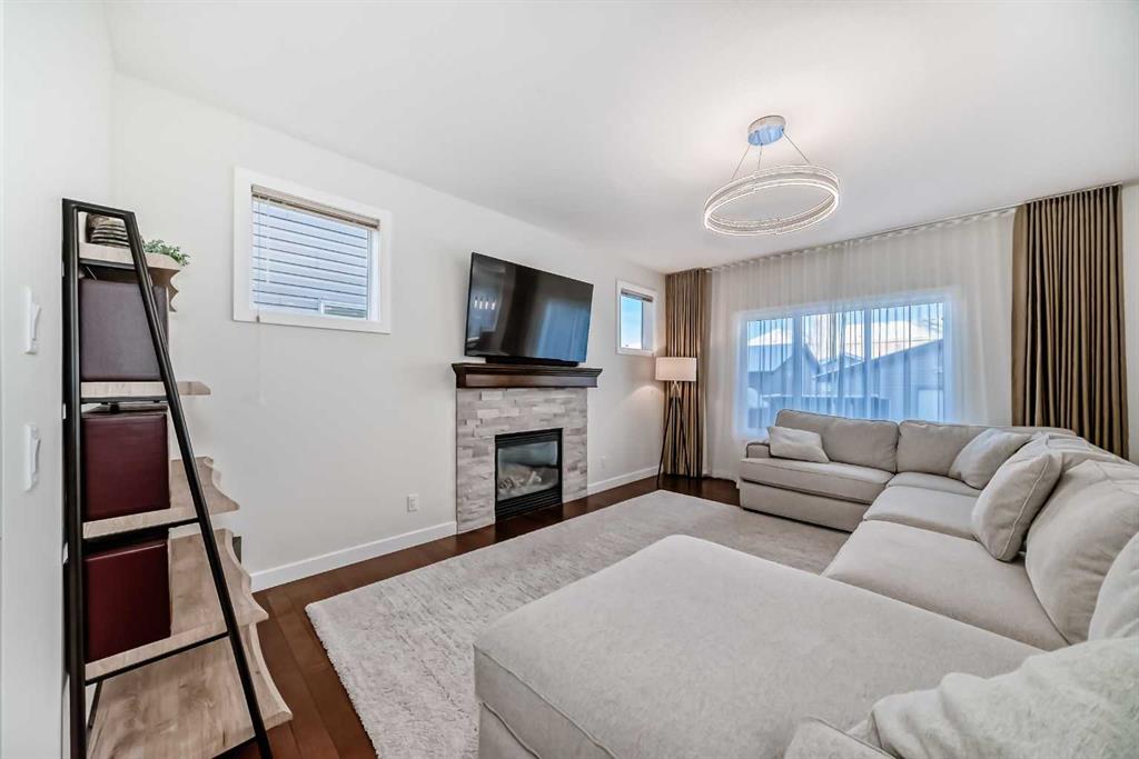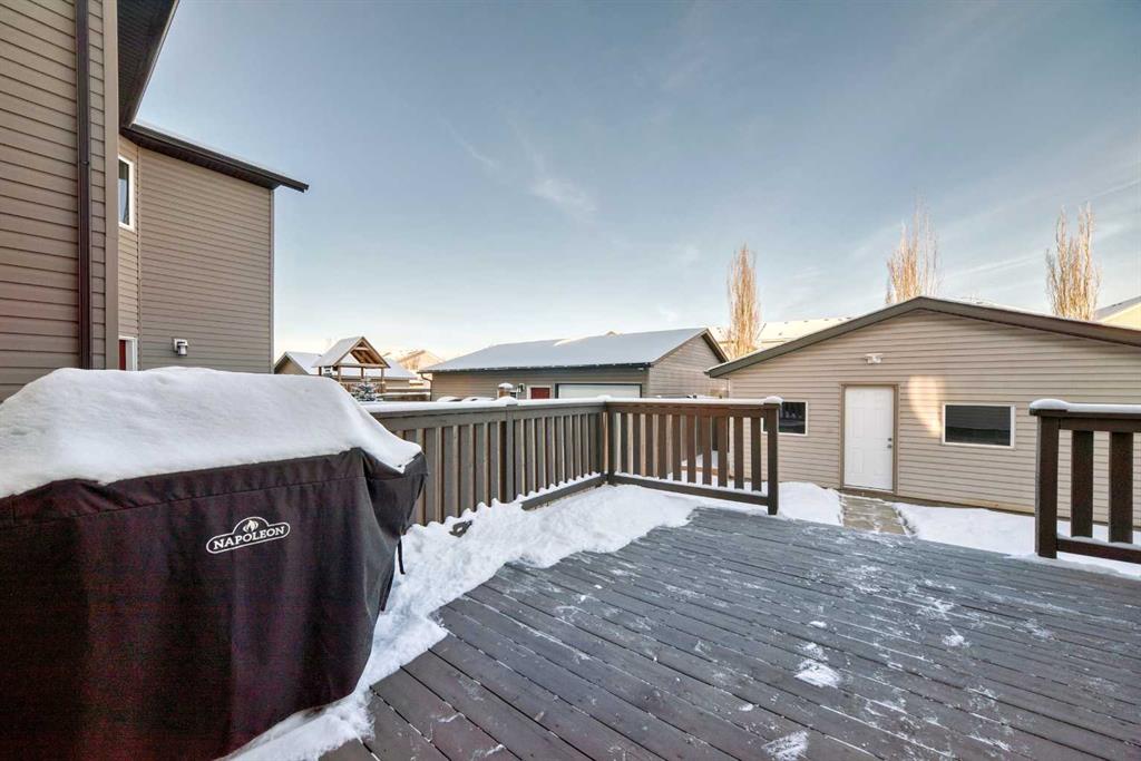 Welcome to 105 Elgin Meadows Circle, a Beautiful 3-bedroom, 2.5 bath home with over 2000-sq.f. of MOVE IN READY space, nicely landscaped lot, and a mountain of upgrades! Step inside the front door to the spacious open concept that is flooded with natural light. The large and bright flex room offers the perfect space for a family room or a sunny home office. Hardwood floors throughout the kitchen, dining and living room area showcasing the ideal layout for entertaining family and friends. The stylish updated kitchen (2023) comes with a custom Italian Quartz counter package, updated white cabinetry and backsplash, Corner pantry, new kitchen faucet and under-mount sink plus a quiet Bosh dishwasher (2023). The main floor ceiling has been upgraded to a knockdown finish and a Cartwright lighting package added throughout the home (2023). The living room features an oversized picture window and a retiled gas fireplace (2023). The dining space has large corner window and connects to the back mudroom with access to the private deck and fenced yard. A dedicated main floor laundry room and a separate 1/2 bathroom for convenience. New carpet /Underlay and fresh paint throughout the house (2025). New cedar front porch with natural stone wrap (2025). Furnace upgraded with a commercial grade Air filter and UV Light (2024). New High efficiency Hot Water Tank and Water Softener (2025) and for the hot summer days a new Lennox 4-ton Central Air Conditioner (2024). Upstairs you’ll find three spacious bedrooms, full 4pc bath and a extra bonus room that can be used as a home office or TV flex room with a Juliet balcony. The large primary has an additional 4pc en-suite bath with a walk-in closet. Unfinished basement is awaiting your finishing touches; In the back you will find a double detached garage with an additional side trailer parking pad and gate, and a convenient BACK LANE. The back deck is ready for your BBQ hangouts or relaxing evenings in the backyard. Located in the highly sought -after Community of Mckenzie Towne, you have easy access to the splash park, winter skating rink, Playgrounds, Schools, and Transit. Mere steps away from the Environmental Reserve with walking/biking paths and ponds. Plus, you’re just minutes from High Street with many Shops, grocery stores, Restaurants and all amenities. With tons fantastic features and new upgrades this home is truly MOVE IN READY with unbeatable location. Come take a look!!!