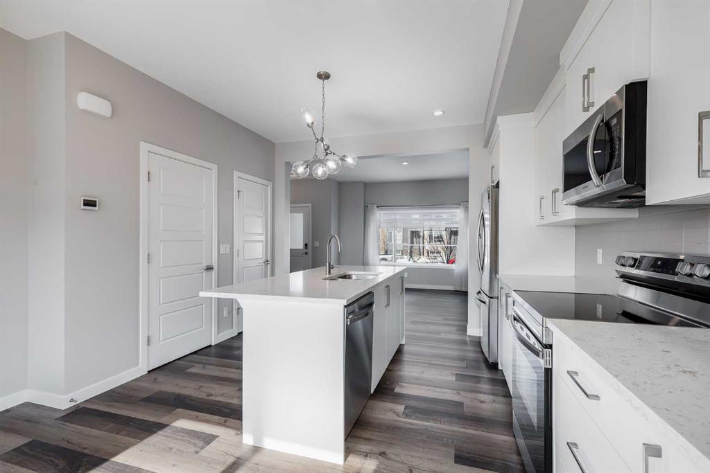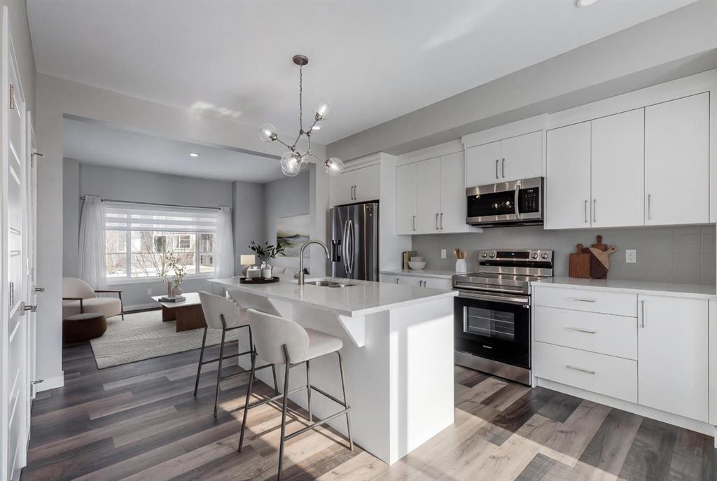 From the moment you step inside, you’ll appreciate the quality finishes, upgraded window coverings, and natural light that fill the main floor. The chef-inspired kitchen features upgraded cabinetry, sleek stainless steel appliances, and stunning quartz countertops — a space designed for both everyday living and effortless entertaining. The open-concept layout seamlessly connects the kitchen, dining, and living areas, creating a warm and inviting atmosphere for hosting guests or enjoying a quiet night in.