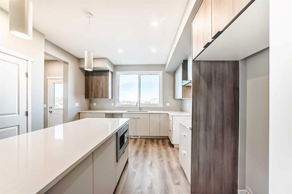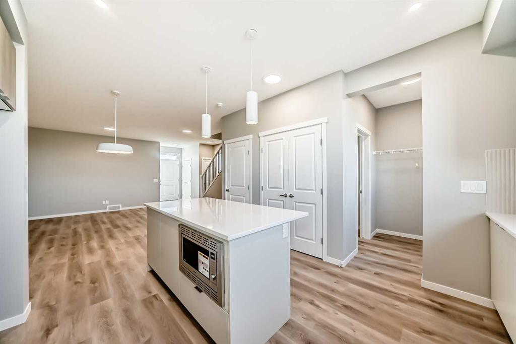Welcome to 1054 Sawgrass Link NW, a beautifully crafted newly constructed home in Sawgrass Park by Hopewell Residential. Designed with everyday comfort and modern elegance in mind, this 3-bedroom, 2.5-bathroom home sits on a sunshine basement lot and includes a garage-ready concrete parking pad. From its bright, open layout to its stylish finishes and thoughtful upgrades, this home is the perfect blend of form and function. The main floor impresses with 9’ ceilings, Luxury Vinyl Plank flooring, and a well-appointed rear L-shaped kitchen featuring two-tone cabinetry, quartz countertops, a chimney-style hood fan, built-in microwave, upgraded backsplash, and an extra bank of drawers for enhanced storage. The spacious island is ideal for entertaining, while the painted spindle railing and knockdown ceilings add a touch of refinement. A convenient main floor pocket office offers the perfect spot for remote work or study, and the exterior gas line is ready for your future BBQ setup. Upstairs, a cozy loft space offers additional versatility — perfect as a reading nook, homework area, or play space. The primary suite features a tile-to-ceiling step-in shower with dual vanities, accompanied by two additional bedrooms and a full bathroom and laundry space to complete the upper level. The undeveloped basement provides endless opportunity for future expansion, complete with 9’ concrete walls, a wet bar rough-in, a bathroom rough-in, and a separate side entrance — allowing for flexible design and functionality as your needs evolve. Finished with durable and stylish Hardie Board siding, this home offers not only curb appeal but also long-lasting protection against the elements. Located in the welcoming community of Sawgrass Park, close to parks, pathways, and local amenities, this property is ready for immediate possession — move in and start your next chapter in style.