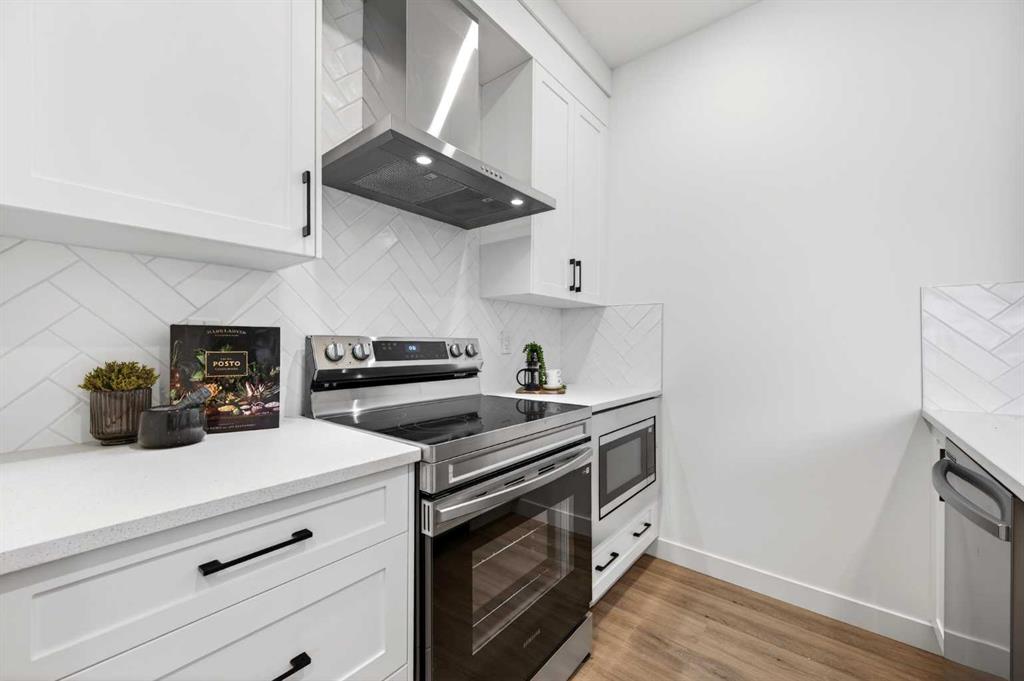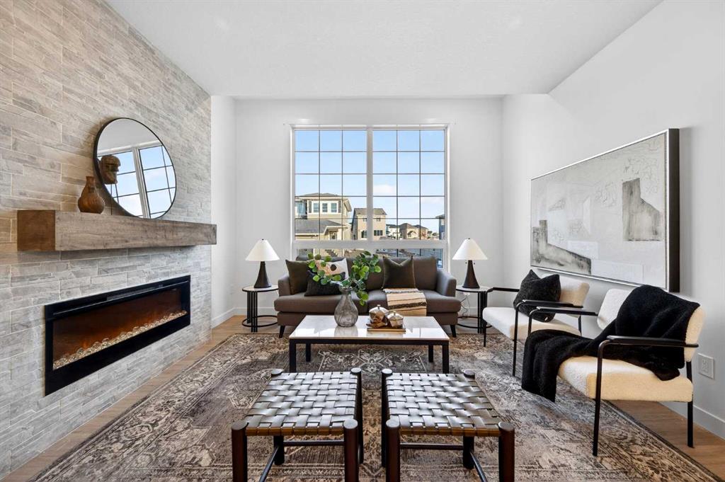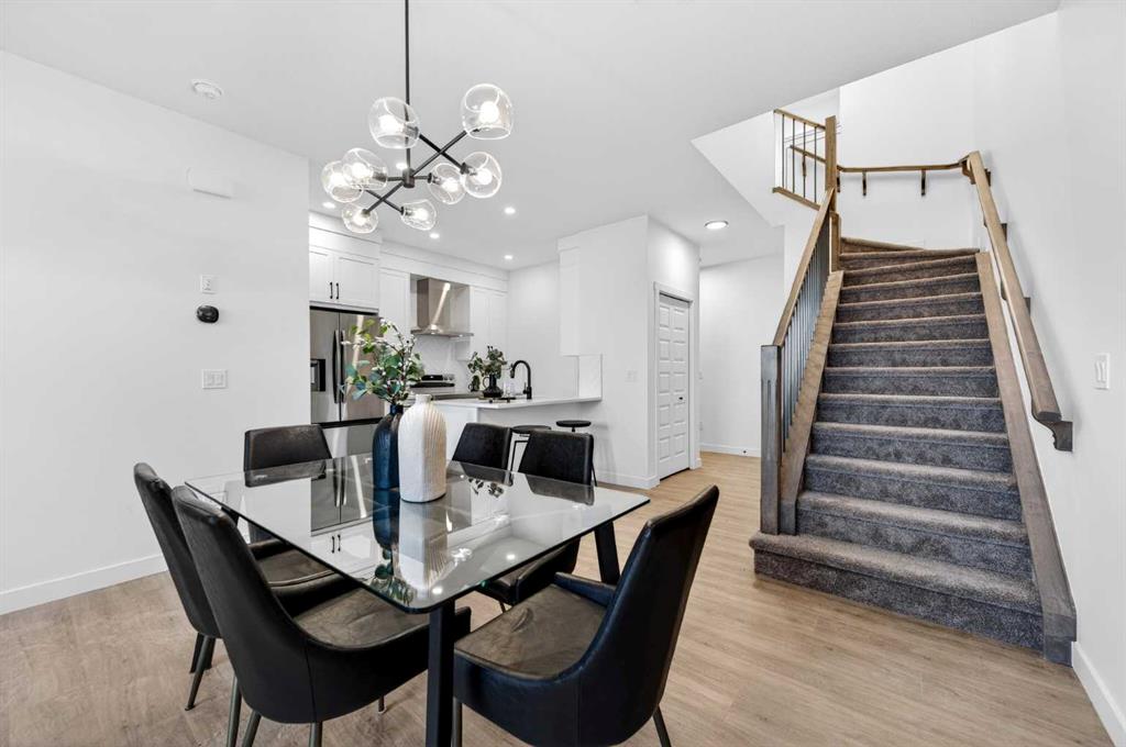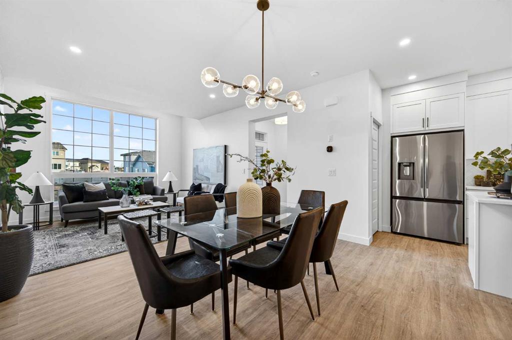 Welcome to 1055 Bayview Crescent, a beautifully designed street-side luxury townhome with NO CONDO FEES! This interior Jasper townhome features an attached double garage, a rooftop patio, and low-maintenance living. The tastefully designed home offers over 1400 sq ft. of above-grade living space plus an unfinished basement with 9′ ceilings, ready for your design ideas. On the main floor, you will find soaring ceilings in the open-concept living space and large windows that let natural light flow through. The chef-inspired kitchen offers beautiful cabinetry and stone countertops and is well-equipped with stainless steel appliances. The kitchen is open to the dining and living room, perfect for entertaining family and friends. Complimenting the main floor is a convenient half bath, storage and entry from the attached garage. Venturing upstairs, you will find a spacious primary retreat with a spa-like ensuite, a spacious shower, and a generous walk-in closet. Two additional bedrooms, a full bath, a 4-piece bath and laundry complete the upper level. Outside, enjoy time on your upper south-facing rooftop patio, which is situated above the garage. Bayview is a beautiful community with parks, benches and pathways that meander throughout the community and along the canals. Kids and adults alike will enjoy the outdoor basketball nets, gym, amphitheatre, and tennis courts, which convert into a skating rink in the winter. Come and see all the amenities the community offers for yourself! *RMS has been applied to the construction drawings provided by the builder. Taxes to be assessed.