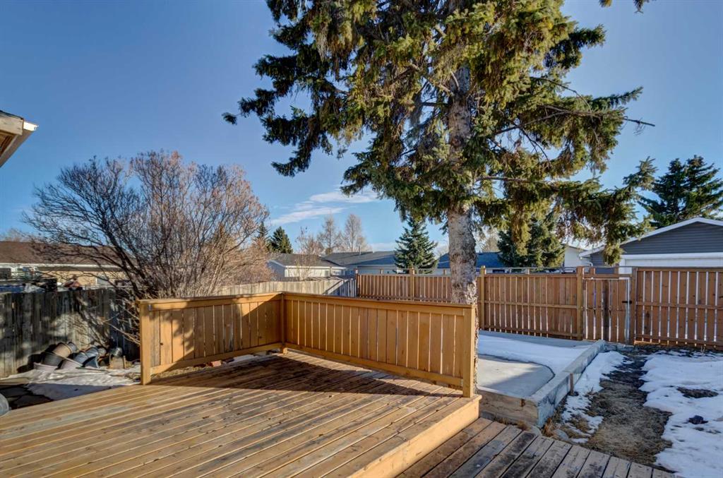 Excellent Opportunity in Pineridge! This well-maintained and upgraded 4-bedroom, 3-bathroom bi-level offers excellent flexibility for families, multi-generational living, or INVESTORS. The bright main level features a spacious living room, dining area, and an updated kitchen with STAINLESS STEEL APPLIENCES and GRANITE countertops. Two generously sized bedrooms and an upgraded full bathroom complete the upper level. The fully developed lower level adds incredible versatility with its own kitchen, large recreation/living area, two additional bedrooms, and two convenient 2-piece bathrooms (one with shower and sink, the other with sink and toilet), making it ideal for extended family or private living space. The home has been updated with new electrical wiring, a new furnace, a new hot water tank, fresh paint completed last spring, and brand-new carpet. Numerous UPGRADES provide by the previous owner, vinyl WINDOWS, front and back doors and the ROOF. Outside, enjoy a beautifully landscaped lot with mature evergreen TREES and great curb appeal. The huge south-facing, fully fenced backyard features a three-tier deck—perfect for relaxing, entertaining, and enjoying sunny days. Ideally located close to schools, parks, shopping, and public transit, with quick and easy access to major routes including 32 Avenue, 68 Street, McKnight Boulevard, and Stoney Trail. A fantastic opportunity offering space, upgrades, and value in a convenient location.