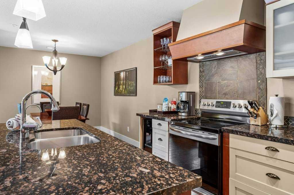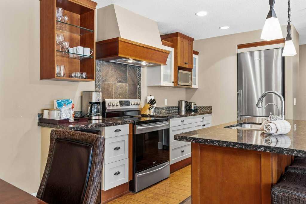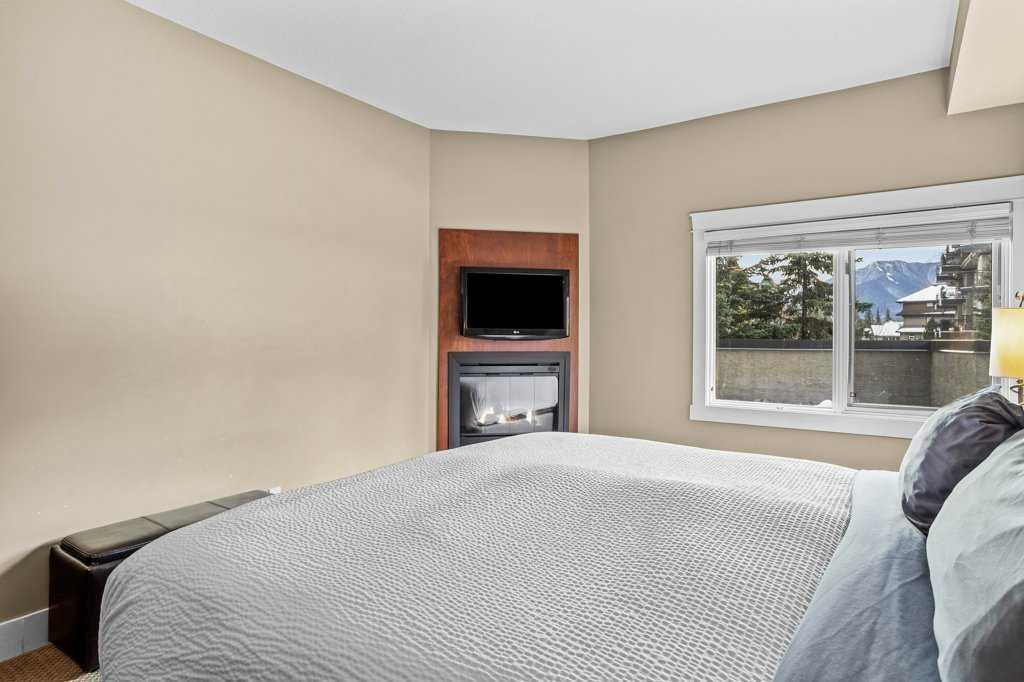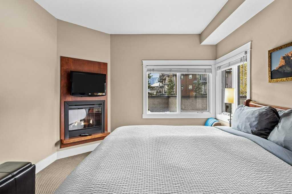 Luxurious Corner Unit at Solara Resort and Spa – Ideal for Short-Term Rental Investment; Experience a mountain escape like no other with this spacious 2-bedroom, 2-bathroom corner unit at the prestigious Solara Resort and Spa in Canmore. Spanning an airy 1,244 square feet, this luxurious property combines modern elegance with high-end finishes, creating a welcoming retreat ideal for both personal use and short-term rental investment. Upon entering, you’ll be greeted by a large, open-concept layout enhanced by warm cork floors and abundant natural light. The thoughtfully appointed interior boasts a gourmet kitchen with sleek stainless-steel appliances, granite countertops, and ample storage, making it as functional as it is stylish. The living area and both bedrooms each feature their own cozy fireplace, adding to the unit’s charm and creating an inviting mountain ambiance. With a pull-out couch, the unit sleeps 6 guests. It is turnkey ready and comes fully equipped. Nestled in one of Canmore’s most sought-after complexes, guests enjoy an indoor pool, a fully equipped gym, and secure underground parking for added convenience. Just a short walk from downtown Canmore, this unit provides easy access to vibrant shopping, dining, and endless outdoor adventures, making it a highly desirable destination. Perfectly designed for Airbnb or personal use, this unit at Solara Resort represents a rare opportunity for investors seeking a lucrative rental property in a prime location. The sale price includes 5% GST tax which most buyers would be able to defer and not pay out. Consult your professional accountant!