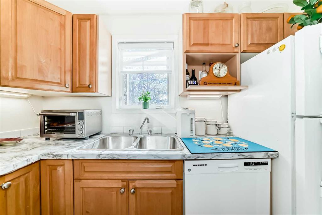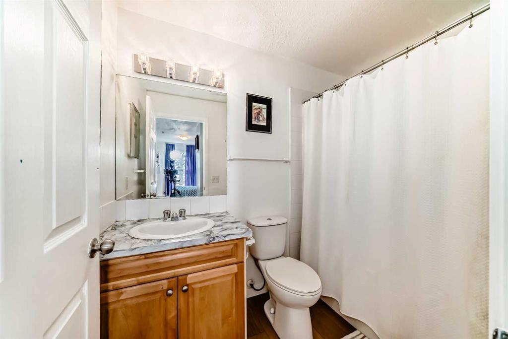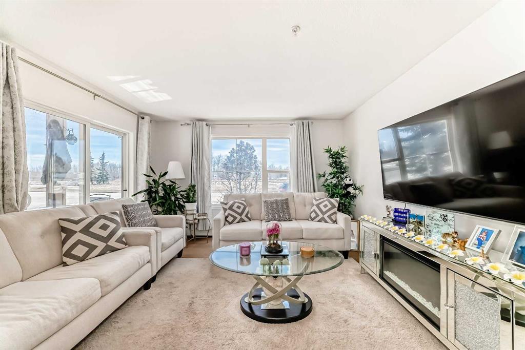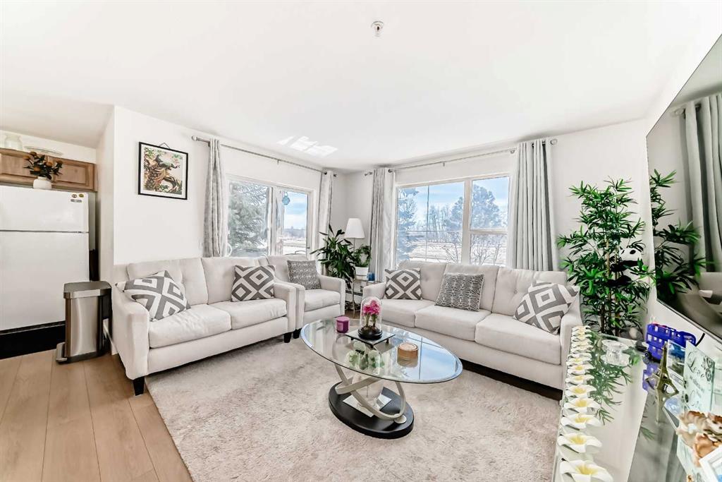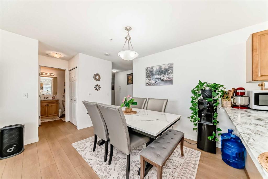 Stylishly updated 933 sq. ft. condo in an easily accessible location on Railway Street, just steps from Elizabeth Street in the heart of Okotoks. This bright unit features modern laminate flooring throughout and soft, inviting paint colours that enhances the clean, contemporary feel. The open-concept design offers a spacious living and dining area, ideal for everyday living and entertaining. The kitchen includes sleek countertops, generous cabinetry, and included appliances for added convenience. Two well-sized bedrooms are highlighted by a private primary suite with ensuite, plus a versatile second bedroom perfect for guests, family, or a home office. Includes an assigned underground parking stall. Unbeatable location close to shopping, dining, parks, and amenities—perfect for professionals, downsizers, or investors seeking low-maintenance living.