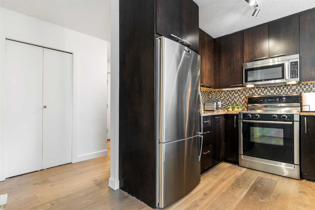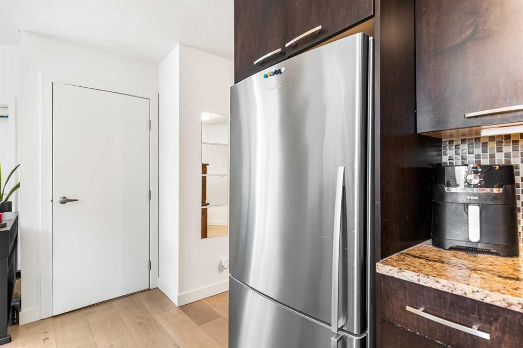 Discover the perfect blend of style, convenience, and investment potential in this chic condo located in the heart of Mission—a rare find in a concrete 6-storey building! Whether you’re a first-time buyer looking for your dream home or an investor seeking a prime rental opportunity, this unit offers exceptional value in one of Calgary’s most vibrant communities. Step into a bright and spacious living area featuring hardwood floors and large south-facing windows that fill the space with natural light. The stylish kitchen is a chef’s delight, with granite countertops, a sleek tile backsplash, matching stainless steel appliances, and a convenient breakfast bar—ideal for casual dining or entertaining friends. The open-concept living and dining areas provide plenty of space for relaxing or hosting, and you’ll love stepping out onto the patio, perfect for outdoor gatherings or unwinding after a long day. The bedroom offers a generous full-width closet and direct access to a modern en-suite, complete with granite counters & a tiled shower. With in-suite laundry, a titled parking stall in the heated parkade, a storage locker, and access to a stunning rooftop patio with city views, this condo has everything you need for comfortable urban living. Plus, the building is meticulously maintained with exceptional management, ensuring your investment is well-protected. Located in the sought-after Mission neighborhood, you’ll be within walking distance of trendy restaurants, cozy cafes, parks, and transit, with easy access to major routes—making it a fantastic location for both living and renting. Don’t miss out on this incredible opportunity to own in one of Calgary’s best communities—whether you’re starting your homeownership journey or expanding your investment portfolio, this condo is a smart choice!