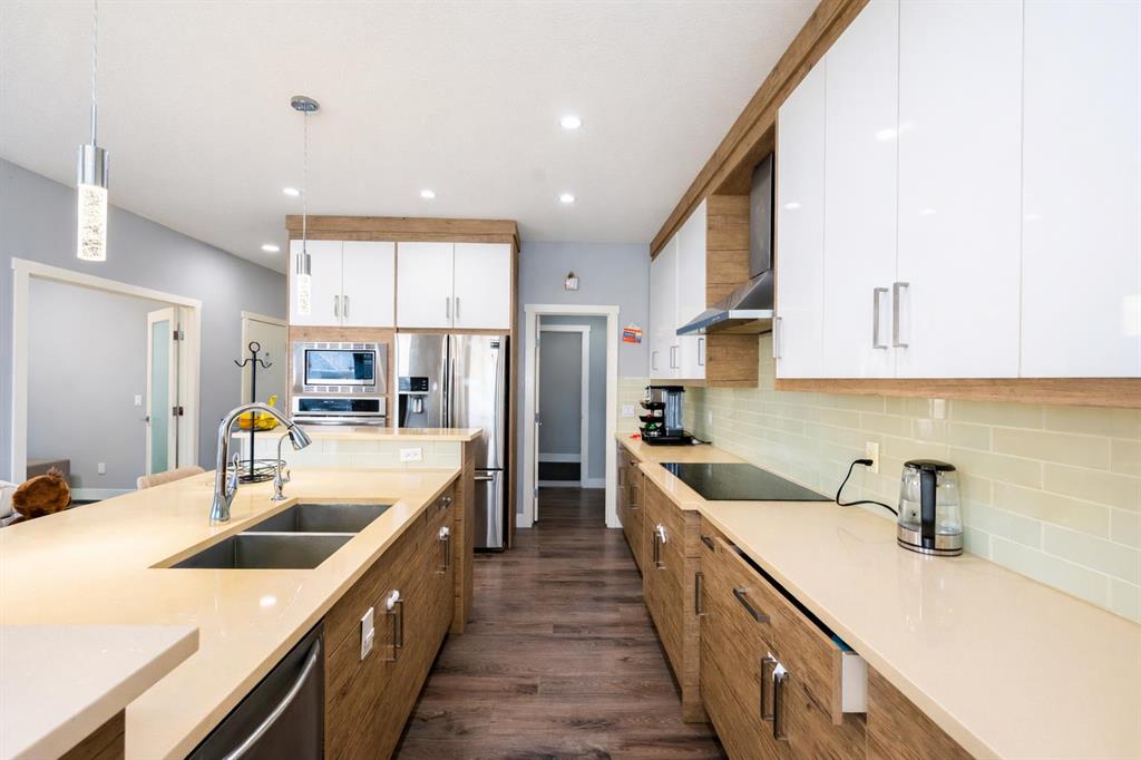 Stunning Walk-Out Family Home With Illegal Basement Suite and Solar Panels in Baysprings! Welcome to this beautifully maintained 2-storey home offering approximately 2,517 sq ft above grade, plus a fully developed walk-out basement with an illegal suite—perfect for extended family or multi-generational living. Step inside to discover 9’ ceilings, elegant LVP and tile flooring, and a thoughtfully designed main floor layout. The heart of the home is the spacious chef-inspired kitchen featuring quartz countertops, a large custom island, stainless appliances, and a convenient walk-through pantry/mudroom. The inviting family room showcases custom built-ins and a cozy fireplace, while a main-floor office/den and full bath add flexibility and convenience. Upstairs, you’ll find 4 generously sized bedrooms, a versatile bonus room, and upper-level laundry. The impressive primary retreat (15’9” x 13’2”) features a recessed ceiling, custom walk-in closet, and a luxurious 5-piece ensuite with tile and glass shower—your private sanctuary after a long day. The fully finished walk-out basement offers 2 additional bedrooms, a full bath, separate living area, kitchen space, and private entrance, providing excellent potential for extended family accommodation. Enjoy year-round comfort with central A/C and energy efficiency thanks to solar panels—reducing utility costs significantly (summer months averaging $0 electricity, winter typically under $200). Outdoor living is just as impressive with a 16’ x 10’ low-maintenance deck, covered patio at grade, wide open backyard, playgrounds, and a nearby elementary school. The double attached garage (17’7” x 25’9”) and oversized garage pad complete the package. Located in the highly desirable community of Baysprings, this home perfectly blends modern finishes, functional design, and an unbeatable location. Don’t miss this rare opportunity—schedule your private showing today!