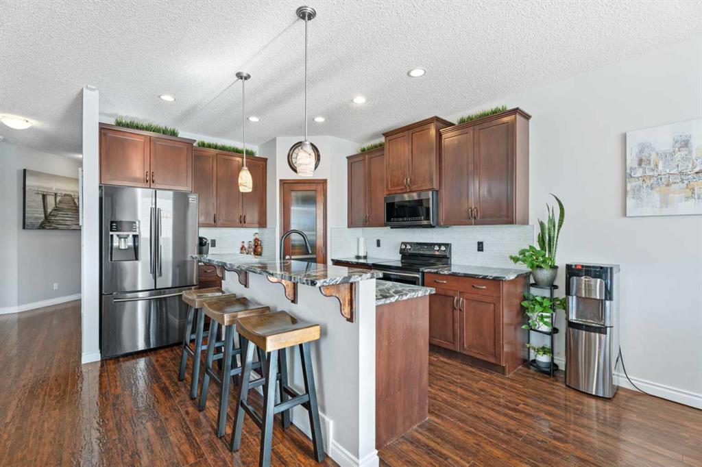 IMMACULATE FAMILY HOME BACKING ONTO GREEN SPACE — STEPS TO PARK & K-5 SCHOOL! Open house Sunday October 19th 12-2pm Perfectly suited for families, this beautifully maintained, move-in ready home is located on a quiet street just steps from a park and K-5 school — making school runs and outdoor play a breeze. Backing directly onto serene green space, enjoy unmatched privacy and stunning southwest-facing yard views. Inside, the main floor boasts soaring 9-foot ceilings and a versatile bedroom or office — ideal for working from home or accommodating guests. Upstairs, you’ll find three spacious bedrooms plus a massive bonus room perfect for a playroom, media room, or home gym. Car enthusiasts and hobbyists will love the oversized 23-foot-wide garage featuring a built-in workbench and fantastic mezzanine storage — plenty of room for vehicles, motorcycles, and all your gear. Step outside to a low-maintenance composite deck with aluminum railings, a beautifully landscaped yard, and a cozy firepit — perfect for family gatherings or relaxing evenings. A private gate offers direct access to the expansive green space behind. The unfinished basement is a blank canvas, ready for your personal finishing touches to add future living space and value. Additional highlights include central air conditioning, central vacuum, and an easy-care exterior designed for years of worry-free enjoyment. This home offers a rare combination of space, location, and low maintenance — all at an exceptional price point. Don’t miss your chance! Schedule your private tour today and experience everything this remarkable home has to offer.