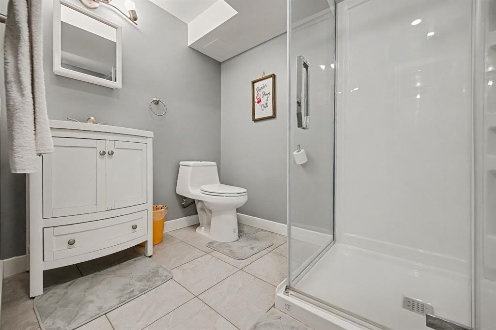 The spacious living room easily accommodates a full furniture layout. The updated main floor bathroom includes a cheater door to the primary bedroom. The FINISHED basement features a large rec/living area, another full bathroom, and an additional den with potential for a window to be added, making it a 3rd bedroom, plus ample storage.