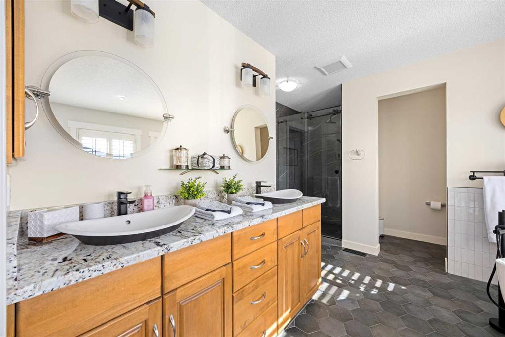 Upstairs, the thoughtfully separated bedroom layout places each room in its own corner of the home, creating privacy for everyone. The owner’s suite, positioned on the south side, is filled with natural light and offers a peaceful retreat, complete with a beautifully updated ensuite featuring dual vanities, heated flooring, and a spacious walk-in closet.