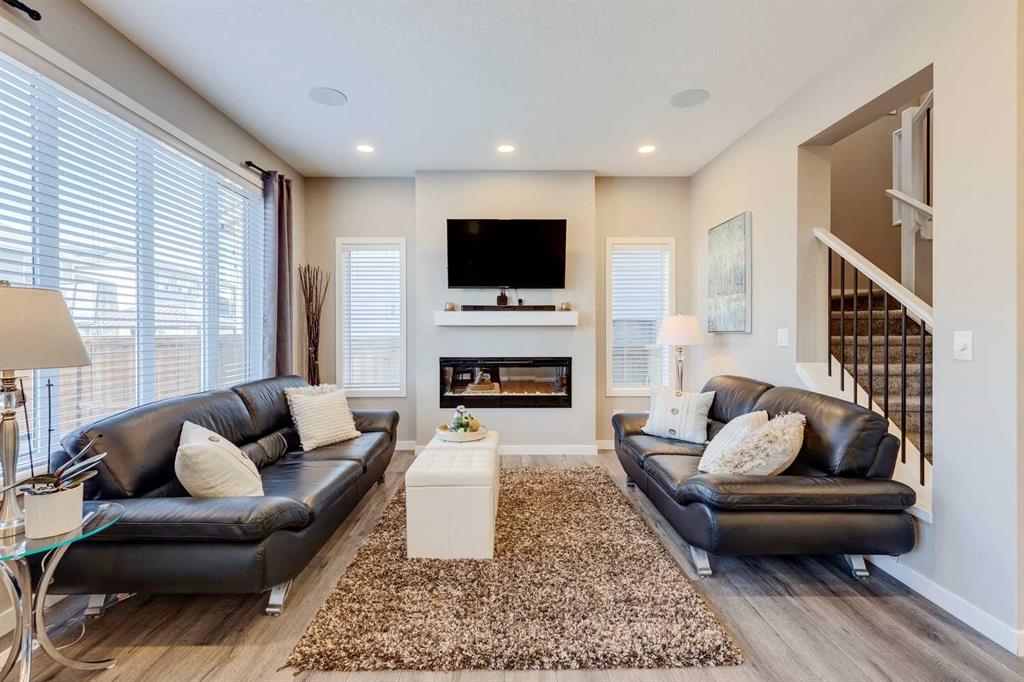 | RARE 3RD-FLOOR LOFT | 4 BEDROOMS UPSTAIRS | LAKE COMMUNITY LIVING | Looking for a beautiful family home with LOTS OF SQ FT? Are you ready to LIVE in a community where you can ice skake in the winter or swim/paddleboard/fish in the summer. Come check out one of Calgary’s MOST DESIRABLE LAKE COMMUNITIES. This beautiful FAMILY HOME features an OPEN-CONCEPT MAIN FLOOR, designed for get togethers. At the heart of the home, a chef-inspired kitchen impresses with FULL-HEIGHT WHITE CABINETRY, soft-close drawers, and undermount lighting that highlights the stunning hexagon tile backsplash. A contrasting navy island with QUARTZ countertops gives lots of additional food prep space. Kitchen also features GAS COOKTOP, built-in wall oven, microwave, and large pantry. The BRIGHT DINING AREA flows seamlessly to the backyard deck, while the inviting living room offers a modern fireplace and tons of NATURAL LIGHT. MAIN-FLOOR FLEX SPACE is ideal for a home office, music room or formal dining space…whatever you need. Mudroom with access to the garage is key for busy families. Upstairs discover 4 SPACIOUS BEDROOMS, including a primary suite with a large walk-in closet and spa-inspired ensuite featuring dual sinks, a deep soaker tub, and a glass-enclosed shower. A 5-piece main bath and upper-level LAUNDRY ROOM with extra storage you will love. The 3RD-FLOOR LOFT is a rare and versatile bonus — ideal as an additional GUEST SPACE, media room, home office, or teen retreat, and comes complete with a full 4-piece bath. The lower level offers endless potential for FUTURE DEVELOPMENT, with plenty of room for a recreation area, gym, or guest room. 2 AIR CONDITIONING UNITS. Set on a quiet street just MINUTES FROM MAHOGANY’S PARKS, PATHWAYS, AND THE LAKE, this home combines style, comfort, and thoughtful design in every detail. ALBERTA NEW HOME WARRANTY until April 2032. Don’t miss out on this one of a kind FAMILY GEM!
