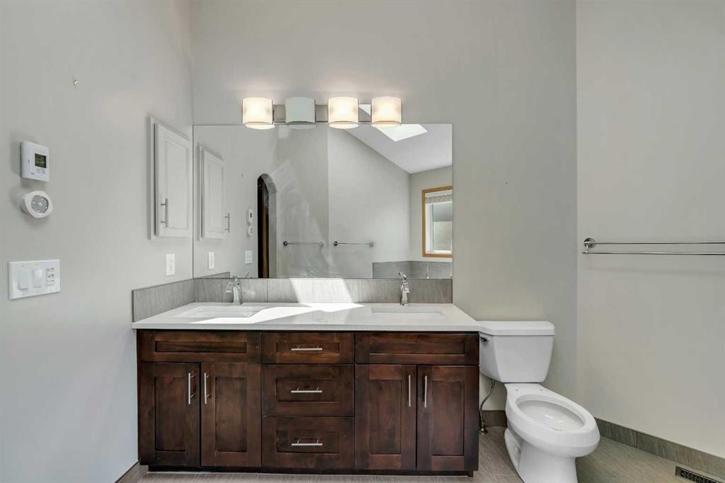 Welcome to this beautiful vaulted bungalow on a spacious corner lot with a sun-drenched south-facing backyard in the heart of Thorburn. This fully developed home offers over 2,600 square feet of beautifully balanced living space designed to support both daily comfort and effortless entertaining. The open-concept layout is enhanced by soaring ceilings and skylights that invite warmth and natural light into every corner while central air conditioning keeps you comfortable in any season. The kitchen is the hub of the home, featuring granite countertops, under-cabinet lighting, stainless steel appliances and a walk-in pantry, all open to the dining area and bright living room framed by south-facing windows. Step out to the expansive deck and enjoy summer BBQs or quiet mornings under the canopy of mature trees. The vaulted primary bedroom is a true retreat with extra windows, a walk-in closet, and a spa-inspired ensuite complete with dual sinks, a jetted tub, custom tile shower heated floors and another sunny skylight for loads of natural light. Two additional bedrooms and a second updated full bathroom with quartz counters complete the main level. Downstairs, 9-foot ceilings create a sense of volume throughout the massive family room, finished with custom built-in cabinetry and a gas fireplace, ideal for movie nights, play space or entertaining guests. A fourth bedroom and third full bathroom provide added flexibility for guests, teens or multi-generational living. The oversized double attached garage is insulated and drywalled with plenty of room for storage or hobbies. The backyard is fully fenced with mature trees and room to play or garden. Located in a well-established community close to parks, schools, walking paths and East Lake, this home delivers comfort, convenience, and a setting you’ll love coming home to!