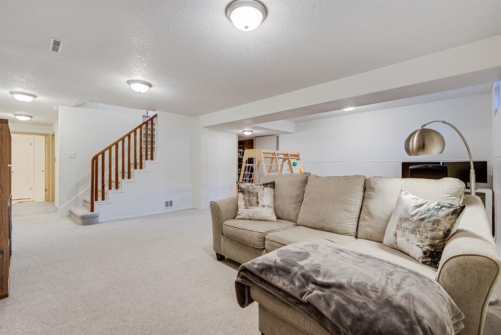 The well-designed main level features three bedrooms, including a comfortable primary retreat with a 4-piece ensuite. The fully developed lower level offers an expansive family room complete with a wet bar — perfect for hosting or relaxing — along with an additional bedroom, den, brand-new carpet, and a 3-piece bathroom. Pride of ownership is evident throughout, with refinished original hardwood floors, updated main floor bathrooms and kitchen, and excellent overall care.