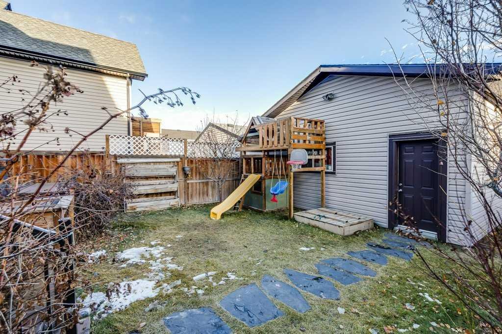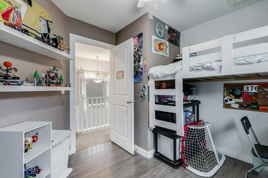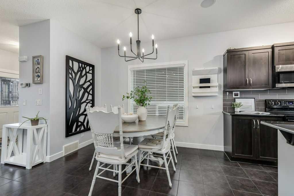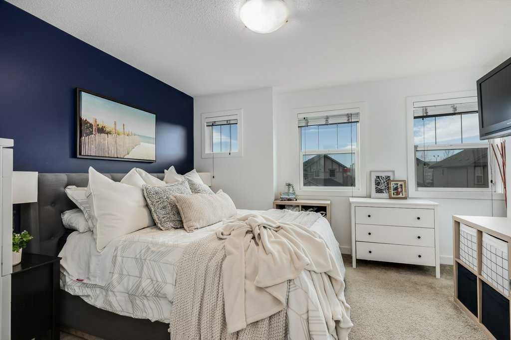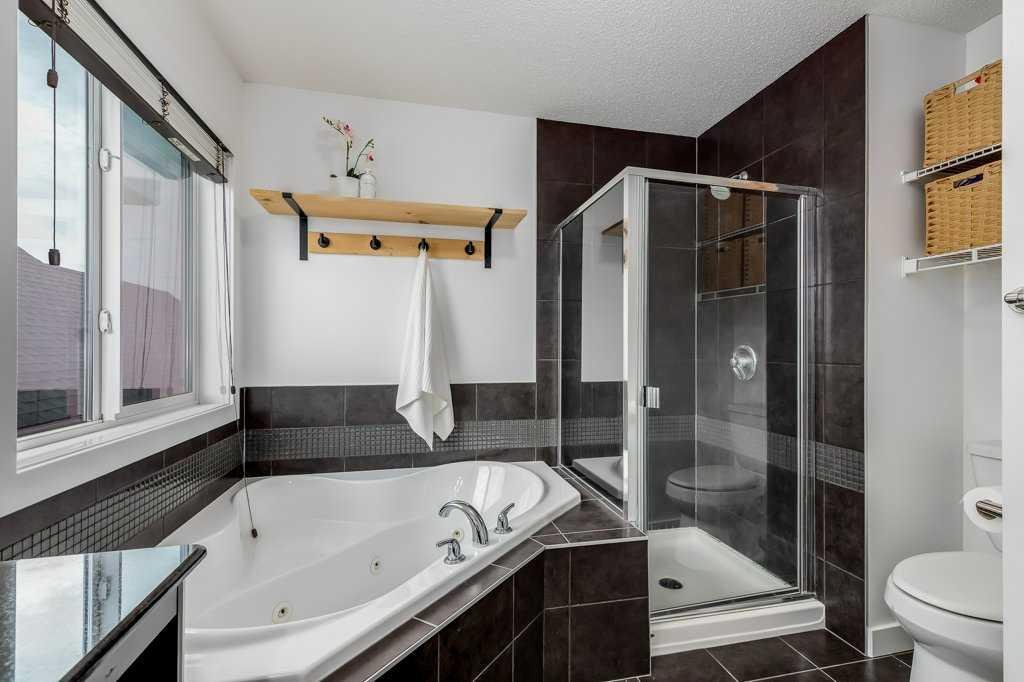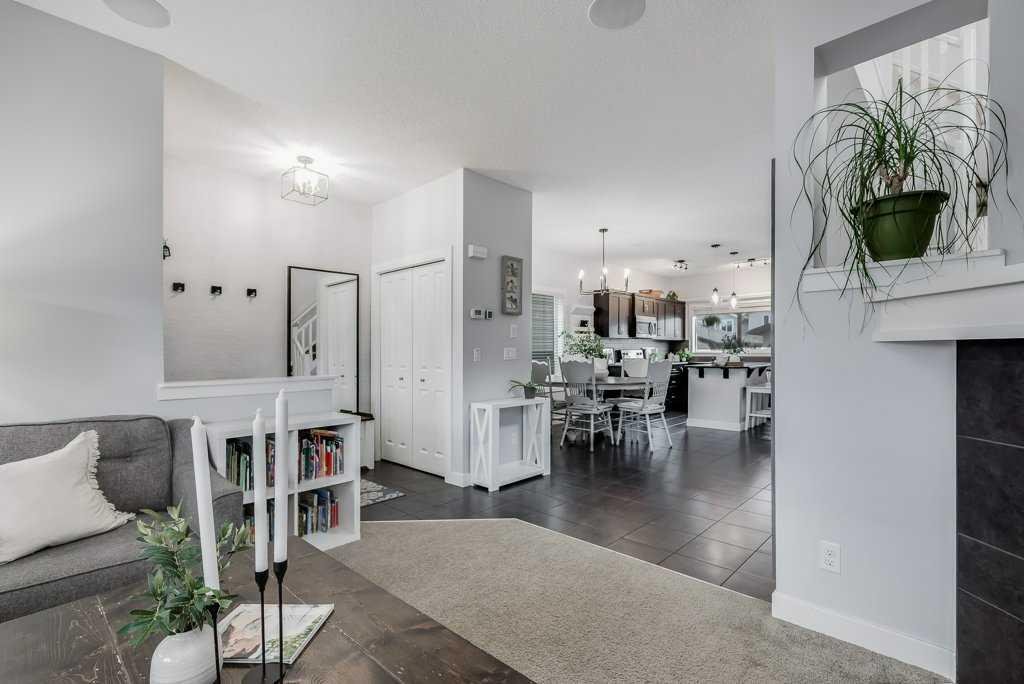Welcome home to this beautifully kept family home on a quiet street in Airdrie with almost 2200 sq ft of living space! Just a short walk to parks, ponds, skating rink, soccer fields, wide-open green spaces and nearby schools. Step inside to an inviting, open-concept main floor with 9 ft ceilings, built-in speakers, a gas fireplace and an abundance of windows that keep everything bright and cheerful. The kitchen offers granite counters, plenty of cabinet space and a generous dining area, plus a handy desk/workstation area on the main floor. Upstairs you’ll find three comfortable bedrooms, convenient upper laundry, a large full bathroom with door to the bedroom, and a spacious primary suite with a walk-in closet and a large ensuite featuring a jetted corner soaker tub, makeup area, and separate shower. The basement is fully finished with permits and feels like its own retreat, complete with a kitchenette, cool concrete countertops, slate flooring, warm wood (cedar-style) ceilings, a cozy living area, full bathroom, 4th bedroom and great storage. This home offers the potential to easily add a side entrance, allowing access to the basement that way, if desired.