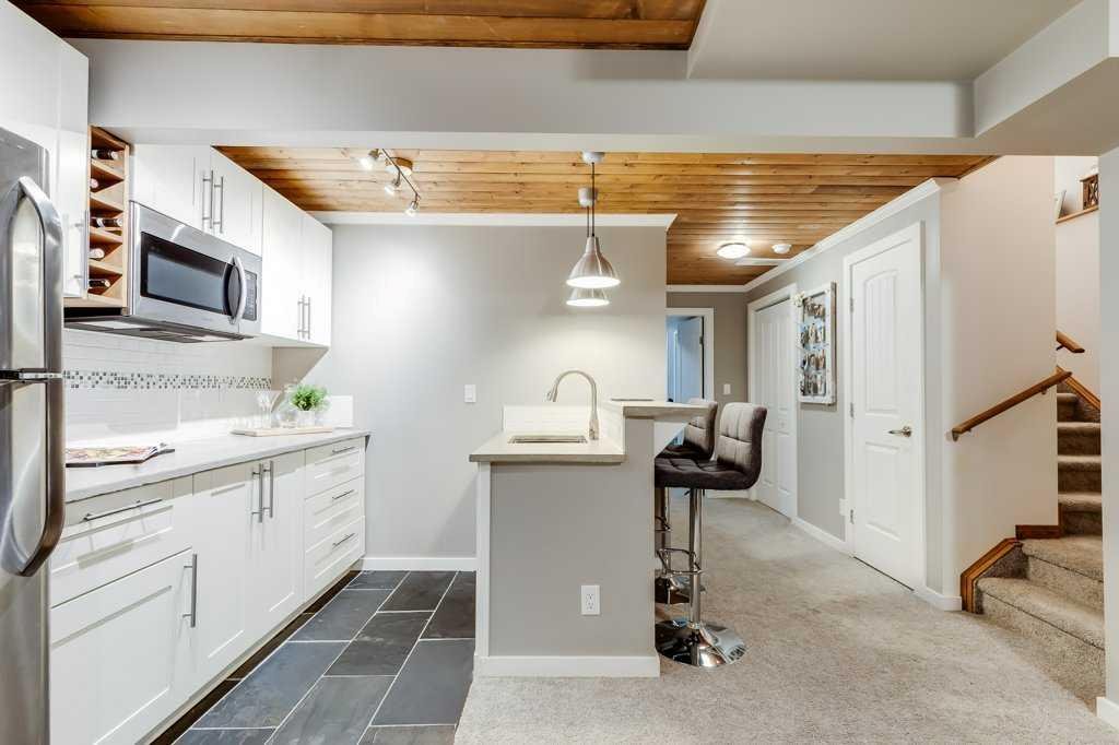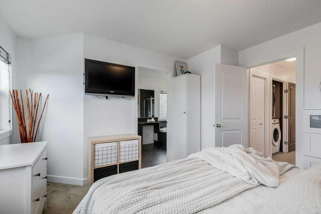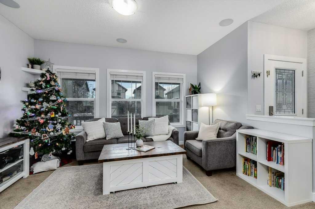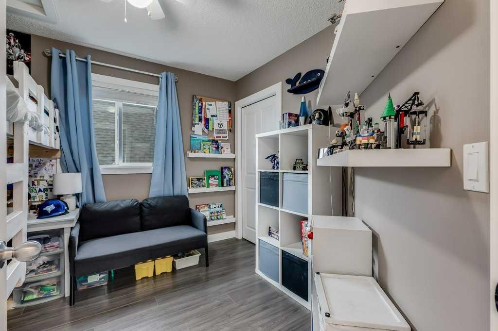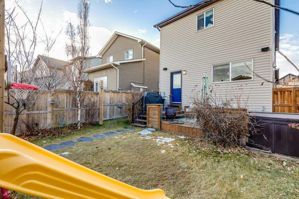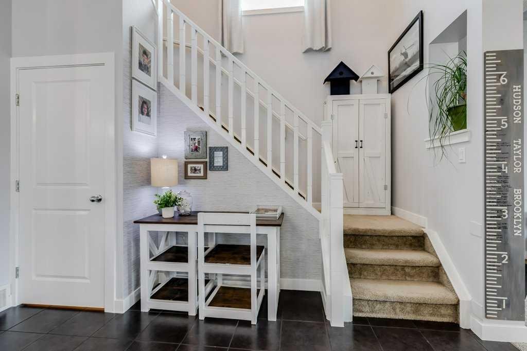 Welcome home to this beautifully kept family home on a quiet street in Airdrie with almost 2200 sq ft of living space! Just a short walk to parks, ponds, skating rink, soccer fields, wide-open green spaces and nearby schools. Step inside to an inviting, open-concept main floor with 9 ft ceilings, built-in speakers, a gas fireplace and an abundance of windows that keep everything bright and cheerful. The kitchen offers granite counters, plenty of cabinet space and a generous dining area, plus a handy desk/workstation area on the main floor. Upstairs you’ll find three comfortable bedrooms, convenient upper laundry, a large full bathroom with door to the bedroom, and a spacious primary suite with a walk-in closet and a large ensuite featuring a jetted corner soaker tub, makeup area, and separate shower. The basement is fully finished with permits and feels like its own retreat, complete with a kitchenette, cool concrete countertops, slate flooring, warm wood (cedar-style) ceilings, a cozy living area, full bathroom, 4th bedroom and great storage. This home offers the potential to easily add a side entrance, allowing access to the basement that way, if desired.