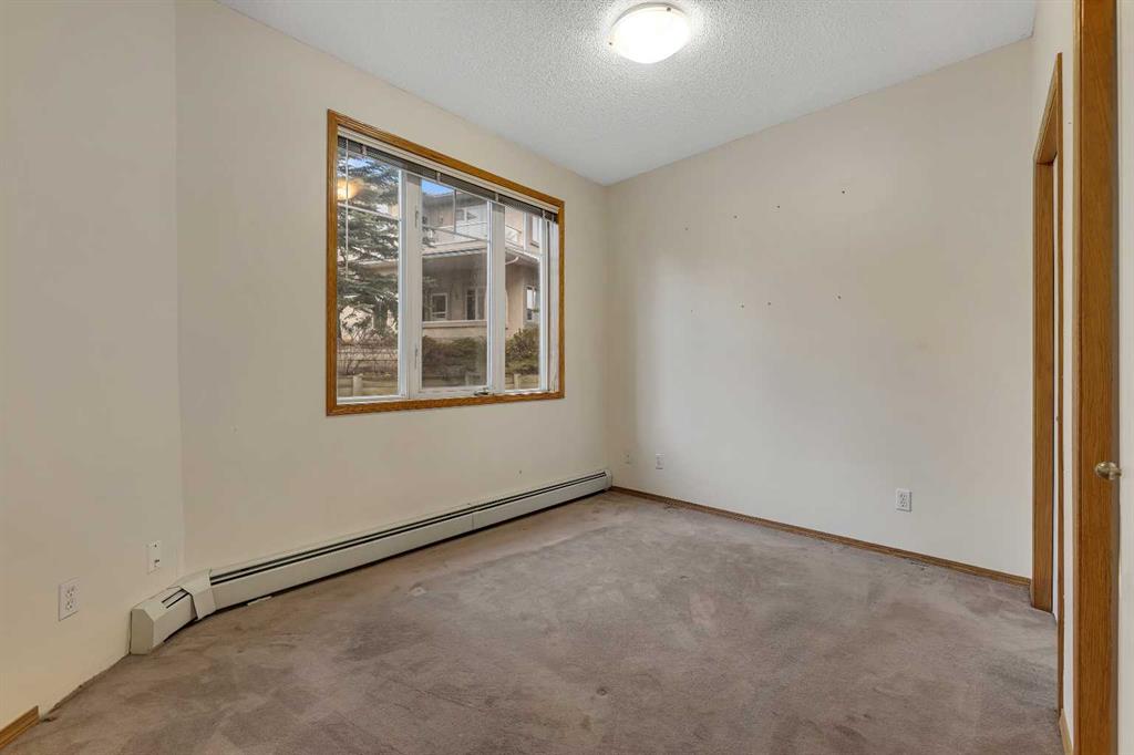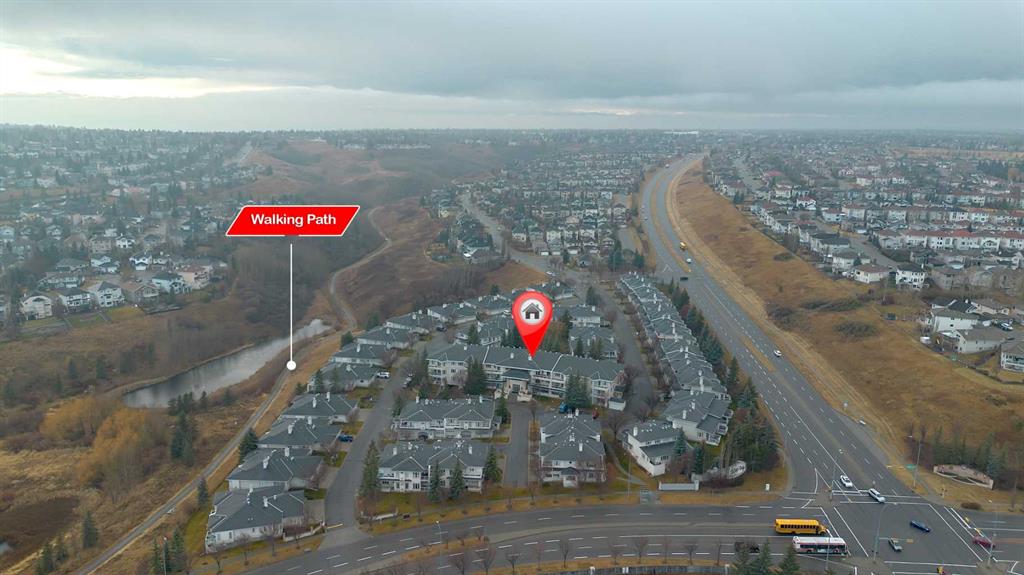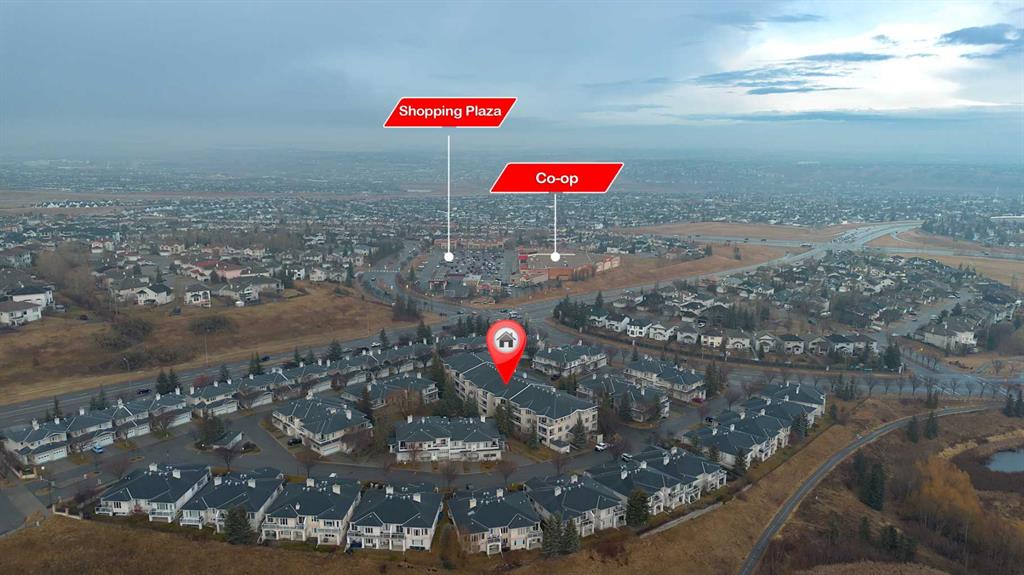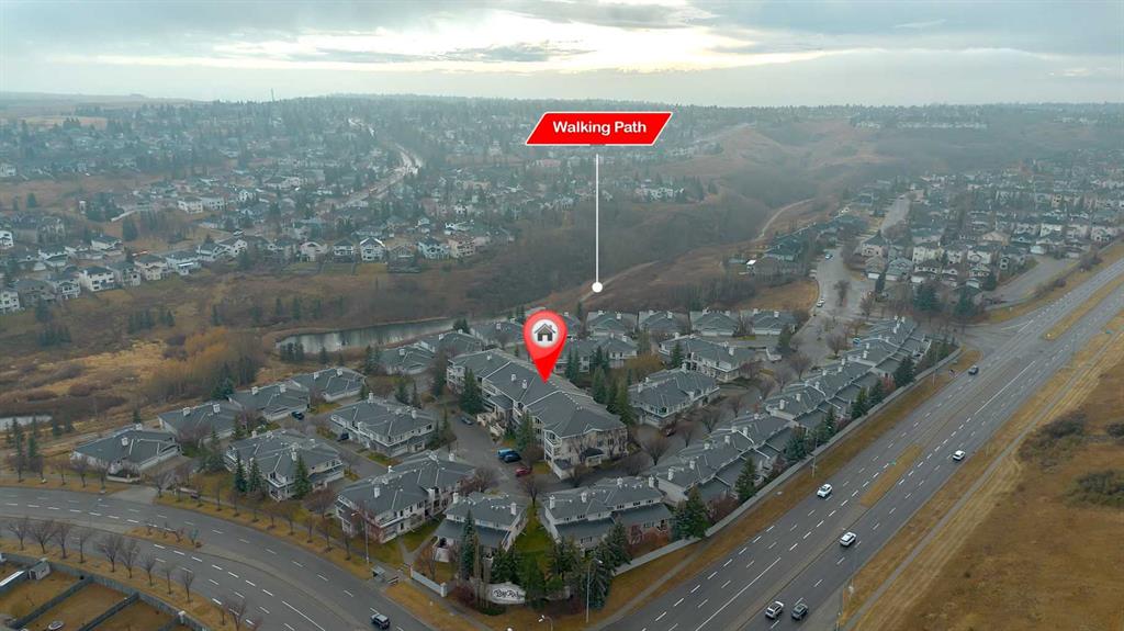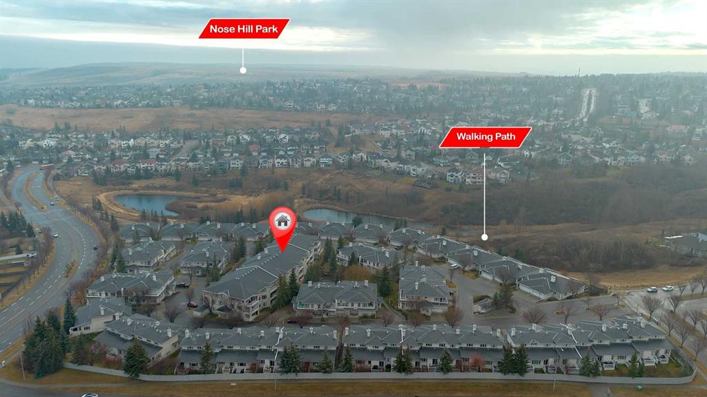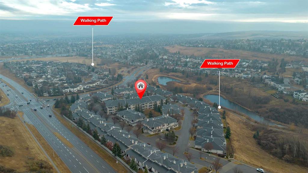Location, Location, main floor unit backing onto green area. This apartment offers a gas fireplace, 9′ ceilings, jetted tub, upgraded toilets,, gas line on patio for bbq, underground titled parking & assigned storage space. Bright open concept offering laundry room, 2 full bathrooms, 2 bedrooms, kitchen that offers a raised eating bar, dining area & a living room that features a gas fireplace with patio doors that access the west facing patio & green space. Click on link to view 3D walk through