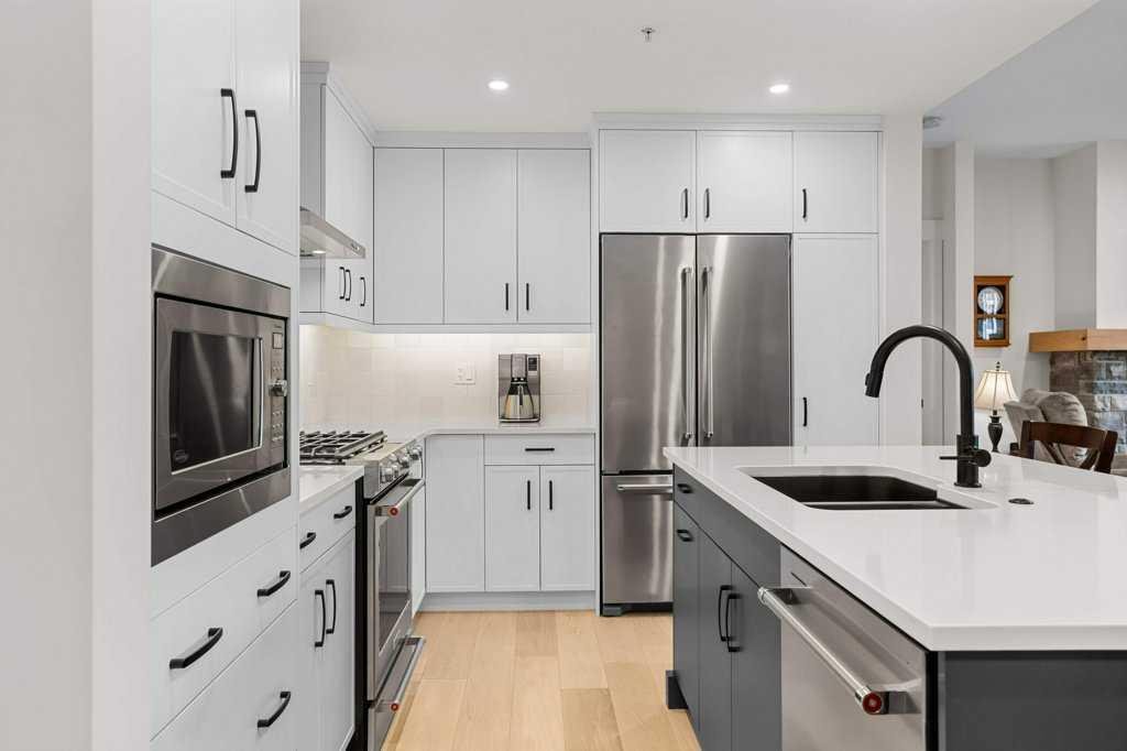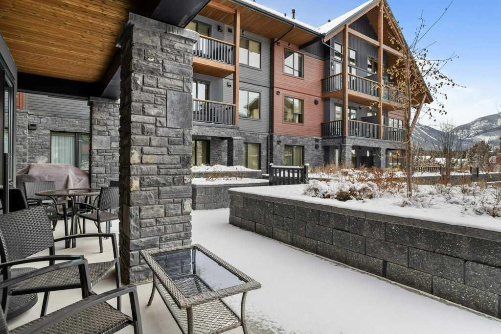 Well appointed and spacious, this lovely 2-bedroom + den/office apartment style condominium in Arnica Lodge is located steps from Spring Creek’s central Plaza with shops and restaurants. Owners will enjoy lounging outside on the large private west facing patio with a gate to the courtyard and walking paths. This property is bathed in natural light and features great views to the Rundle Range, open concept living space with a gourmet kitchen, hardwood flooring, quartz counters throughout, stainless steel appliances, and a titled tandem parking stall. After hitting the trails or a day skiing owners will enjoy the roof top hot tub with views of the Three Sisters.