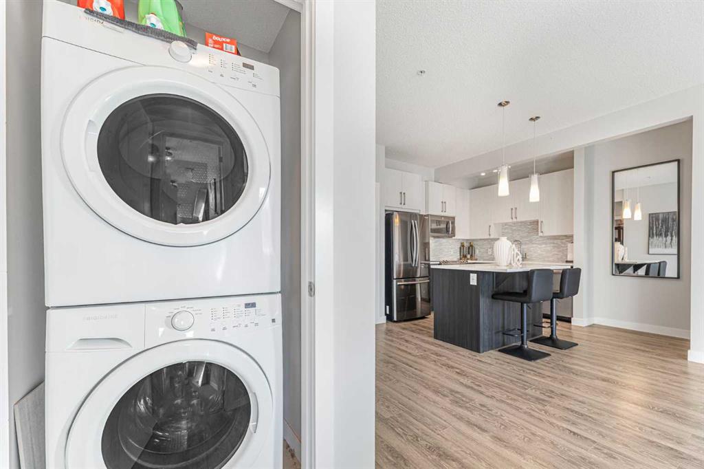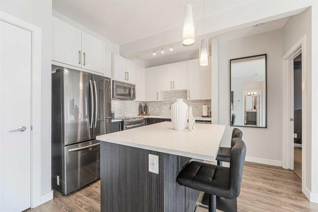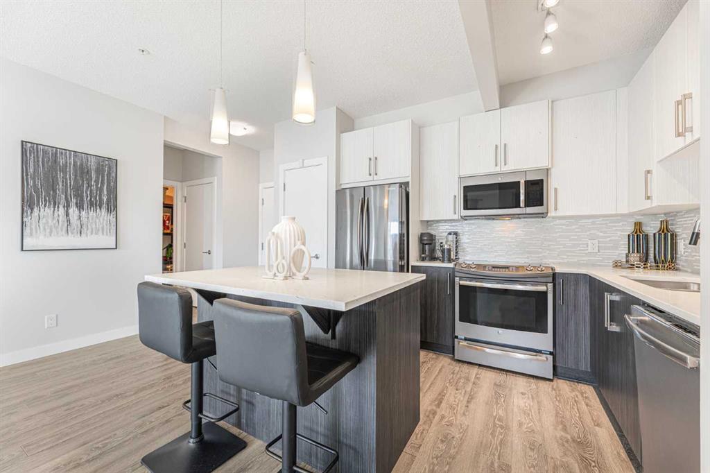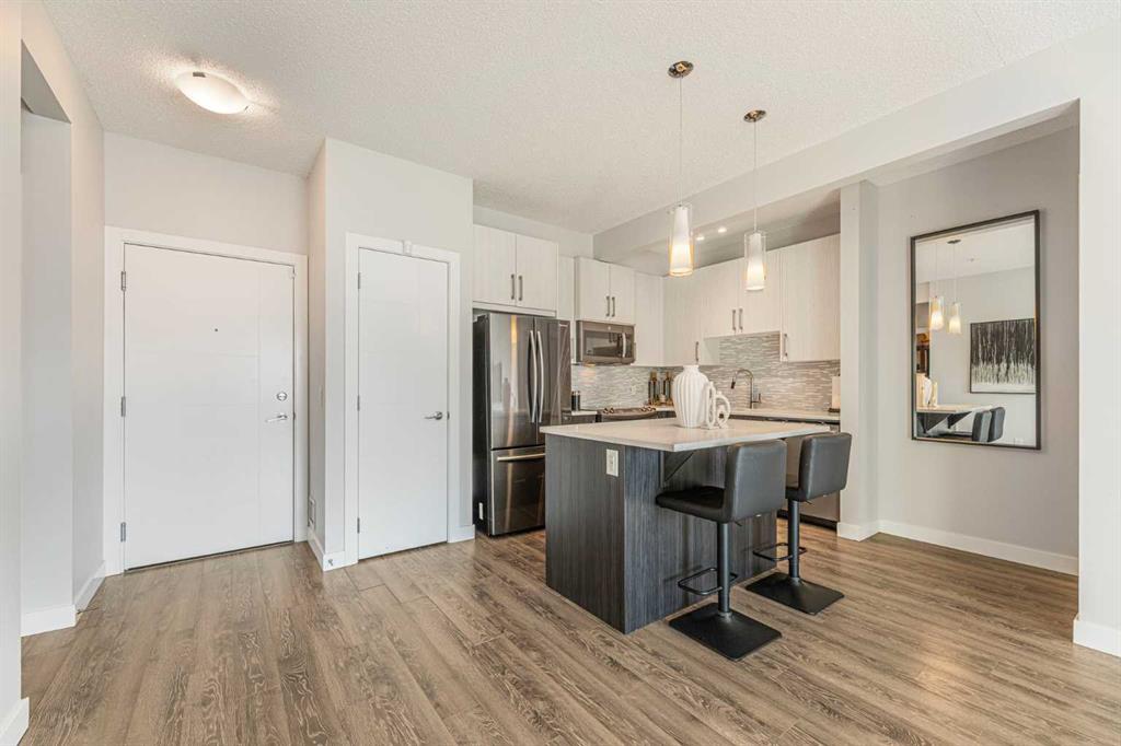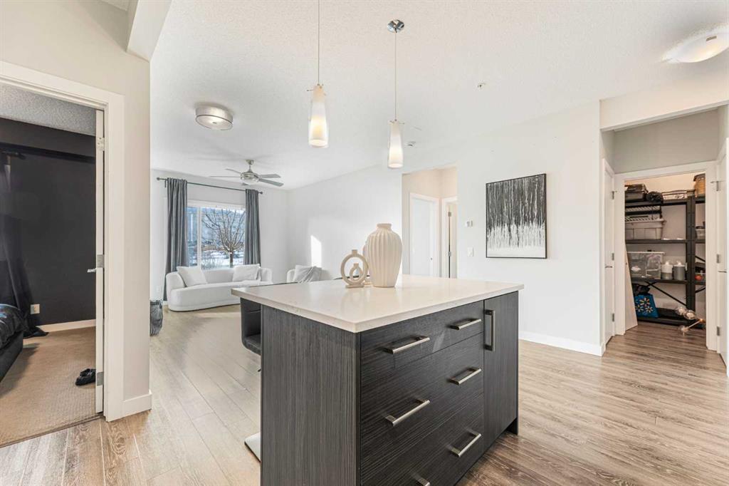 Experience modern living in this stunning ground-floor condo located in the heart of vibrant Sage Hill. Boasting 9-foot ceilings and sleek luxury vinyl plank flooring, this open-concept unit is flooded with natural light from its prime south-facing orientation. The chef-inspired kitchen features quartz countertops, a large island with seating, stainless steel appliances, and a dedicated pantry. The thoughtful layout includes two spacious bedrooms that are separated by the living space. The primary retreat features a walk-in closet leading to a private 4-piece ensuite with luxurious heated tile flooring—a comfort also found in the second full bathroom. Step through the screened door to your private patio, perfect for BBQs and immediate access to community walking paths. It also doubles as your direct access to your unit without going through the building with plenty of street parking out front. Located minutes from Walmart, Costco, T&T Supermarket, and Stoney Trail. This move-in-ready home offers the perfect blend of convenience and style!