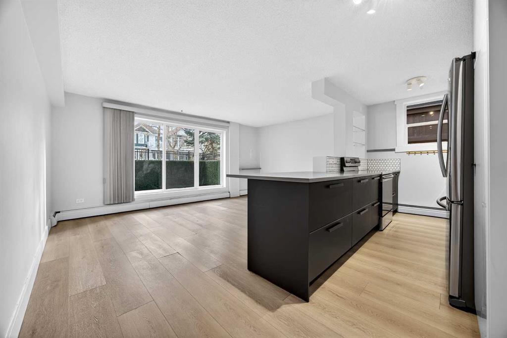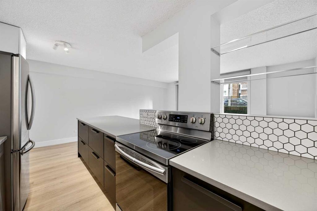 Bright and spacious south-facing corner unit located on a quiet, tree-lined street in the heart of Sunalta. This updated two-bedroom condo features quartz countertops, high-gloss cabinetry, new appliances, matte black fixtures and a stylish honeycomb backsplash in the kitchen. Luxury vinyl plank flooring (updated in 2023) runs through the living room, kitchen, and hallway, adding a modern touch. The primary bedroom offers ample closet space, while the second bedroom is ideal for a home office, guest room, or gym. Enjoy the convenience of in-suite laundry, plus additional building laundry on the same floor. Situated in a quiet concrete building with a private parking stall and in-suite storage. Just steps from the Calgary Tennis Club, C-Train station, parks, boutique shops, and some of the best breweries and dining the city has to offer. Exceptional value in one of Calgary’s most walkable inner-city neighbourhoods!