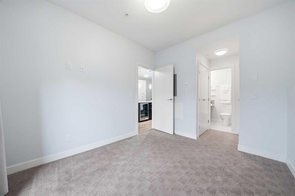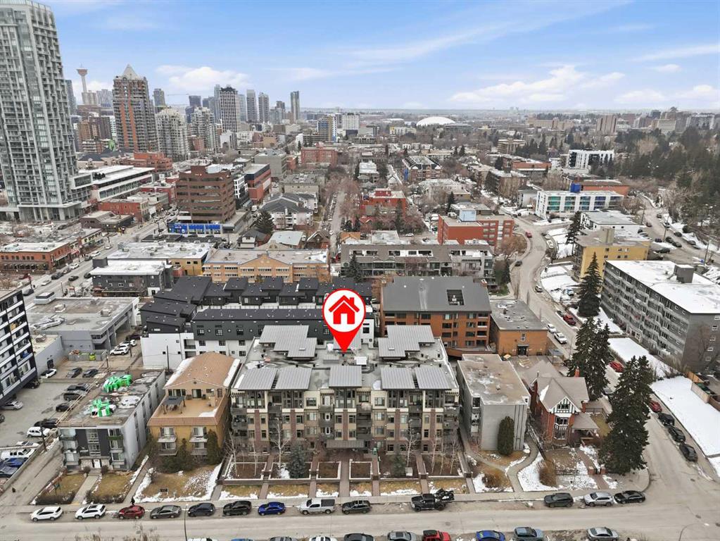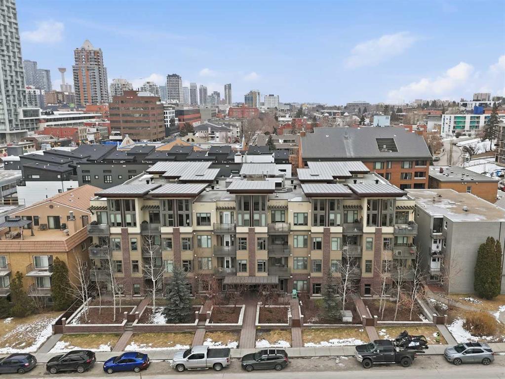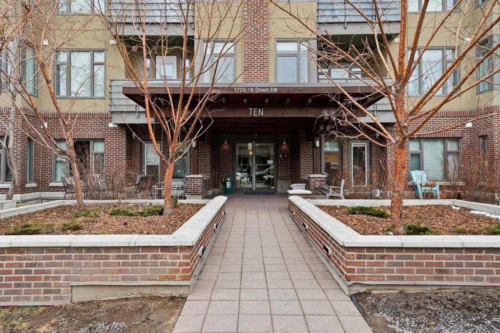 Do you want to be in the heart of all the action of downtown Calgary? This GROUND FLOOR CORNER CONDO is just steps from 17th Ave – located in the well managed, PET FRIENDLY, 2015 built TEN building – one of the most sought-after modern builds in the prestigious community of LOWER MOUNT ROYAL. Offering tremendous value at $434,000 – this 762 square foot 2 BEDROOM, 2 BATHROOM home is the perfect purchase for those looking for modern finishes and a newer building. This unit offers affordable monthly fees of $613.78, an ASSIGNED STORAGE LOCKER, and a TITLED PARKING SPACE located just steps from the elevator. In the well planned open concept design, you’ll find two bedrooms, both with their own ensuite bathroom, as well as a FULL-SIZED LAUNDRY PAIR. The living space features West exposed windows making this a light-filled, cozy space. In the spacious kitchen and dining area, you’ll love the cork floors, large island with QUARTZ COUNTERTOPS, and stainless steel appliance package complete with a beverage fridge. You’ll be impressed by the easy access into the unit from the TWO PATIO DOORS – forget the elevator and buzzing guests in—enjoy the direct-access convenience that FEELS MORE LIKE A TOWNHOUSE than a condo. FRESHLY PAINTED and cleaned (including the carpet), this unit is move-in ready and completely turn-key. With an INCREDIBLE LOCATION IN THE HEART OF CALGARY’S DOWNTOWN – the list of amenities just a short stroll away is endless. If you’re looking for that vibrant city lifestyle at an amazing price, this home is a must-see. With Calgary’s ever-growing popularity, stop renting and watch your investment continue to rise. Call for a private showing!