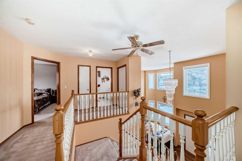 Welcome to this fantastic house. Located at exclusive Nirvana Point Estate, in the mature neighbourhood of Hawkwood, NW Calgary. This 2-storey home featured New Windows and a partially developed basement. Embracing an expansive open concept, it offers a generous living space of over 2,195 square feet. Upon entering the main floor, you’ll be greeted by a spacious living room featuring bay windows that allow abundant sunlight to fill the space. The open kitchen is equipped with cabinet, stainless steel appliances, a pantry, and an eating nook that provides access to a lovely surrounding deck. The spacious family room is adorned with an inviting fireplace that adds a cozy ambiance to the space. Additionally, the main level offers a formal dining room, creating an ideal environment for hosting guests. The separate laundry room and 2-piece bathroom add functionality and convenience to this level. As you ascend to the second storey, you will discover a generously sized master bedroom, with big windows, a walk-in closet and a 4-piece ensuite. And two well-appointed bedrooms, with a 4-piece bathroom. The partially developed basement enhances the overall living space and includes an entertainment area, an extra unfinished bedroom and a 2-piece bathroom. The beautiful backyard is an ideal space for gathering with family and friends. This property enjoys an excellent location, close to all major amenities, shopping, schools, parks, public transportation, and more. Book your private showing today!