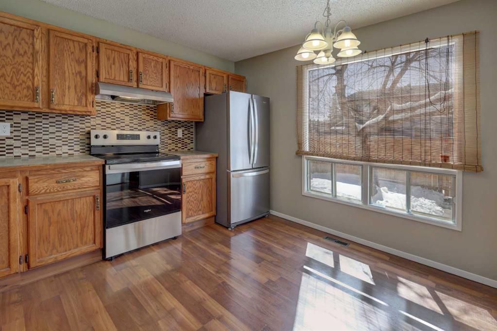 Welcome to this charming two-storey home in the peaceful, established community of MacEwan, ideally situated on a spacious corner lot with mature trees, beautiful landscaping, and a sunny south-facing backyard. Enjoy the extra outdoor space, along with the convenience of two dedicated parking stalls. Inside, this well-maintained home offers three comfortable bedrooms and a full bathroom upstairs, including a generous primary suite with dual closets. The main floor features an updated eat-in kitchen with all-new appliances (2025) and a convenient half bath, while recent upgrades include a new furnace (2022) and a new roof and siding scheduled for fall 2025. Perfectly located just minutes from a local daycare and elementary school, with quick access to 14th Street, Deerfoot Trail, and Stoney Trail, plus direct bus routes to downtown, this home blends suburban tranquility with everyday convenience.
