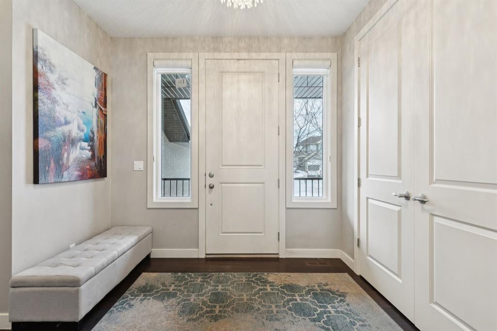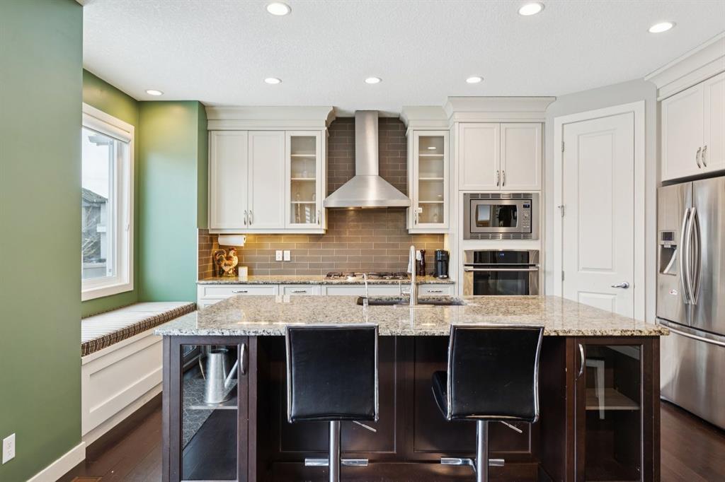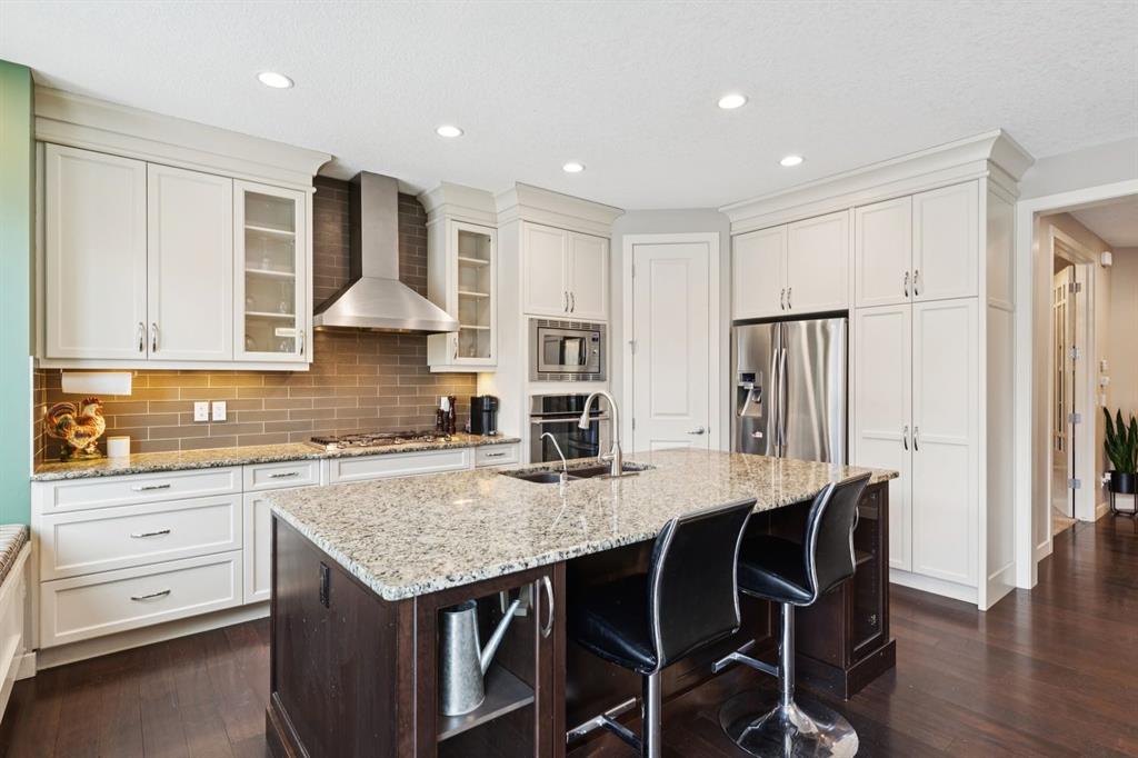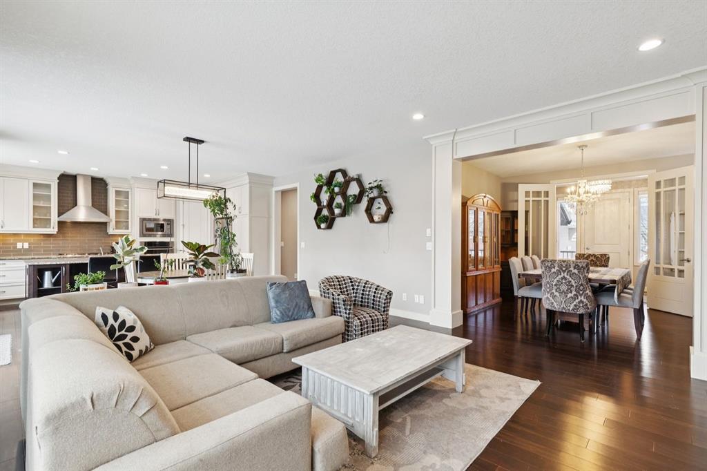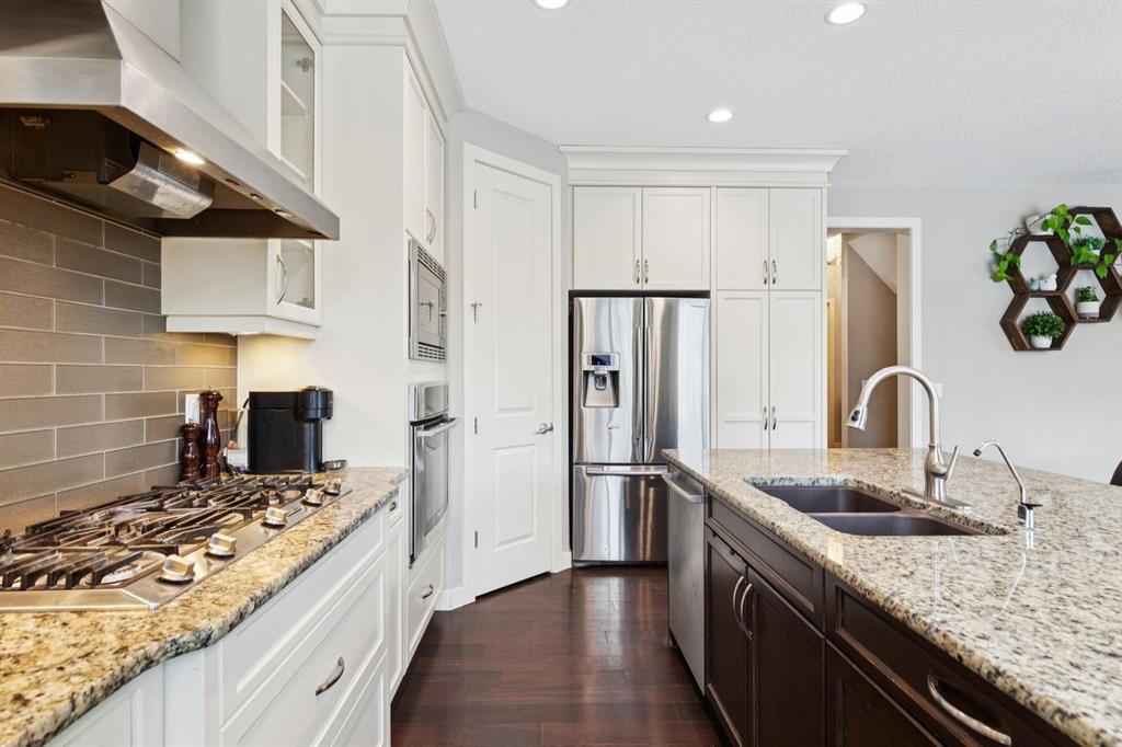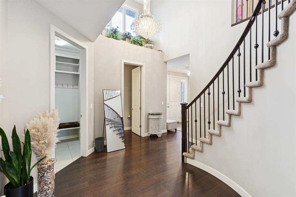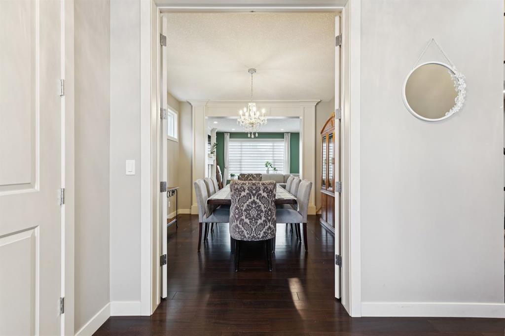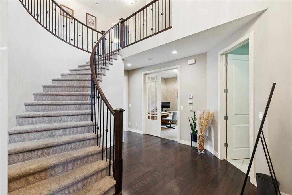 An exceptional family home nestled in the prestigious Estates of Panorama Hills, perfectly situated on a quiet, family-friendly cul-de-sac just steps from schools, parks, walking paths, and the community pond. With easy access to Stoney Trail, this location offers a seamless commute while keeping everyday amenities right at your fingertips. From the moment you arrive, the stucco and stone exterior delivers striking curb appeal and a high-end first impression. Inside, you’re greeted by a stunning curved staircase, soaring 9’ ceilings, elegant crown molding, and oversized 8’ interior doors that enhance the home’s sense of scale and craftsmanship. The main level is thoughtfully designed for both everyday living and entertaining, featuring a bright open floor plan filled with natural light. Engineered hardwood flooring, custom finishing, and multiple built-in window bench seats with storage add warmth and functionality throughout. The chef-inspired kitchen is beautifully appointed with granite countertops, upgraded stainless steel appliances, a gas cooktop, and ample cabinetry—perfect for hosting family and friends. A dedicated main floor office with French doors offers an ideal workspace or study, while a functional laundry and mudroom keeps daily routines organized. Upstairs, you’ll find four generously sized bedrooms, including a comfortable primary retreat with full spa-like en suite, along with a well-designed 5-piece kids’ bathroom, perfect for growing families. The fully finished basement extends your living space with upgraded laminate flooring, a fifth bedroom (or home gym), additional bathroom, loads of storage space and flexible recreation or media area. Outside, enjoy a fully fenced backyard complete with a deck—ideal for summer BBQs, kids at play, or relaxing evenings at home. Thoughtful details like barn doors, custom millwork, and upgraded finishes throughout reflect pride of ownership and attention to detail. With 5 bedrooms, 3.5 bathrooms, exceptional upgrades, and an unbeatable location in one of NW Calgary’s most desirable communities, this home delivers space, style, and long-term value. A rare opportunity to secure a beautifully finished estate-level home that truly checks all the boxes.