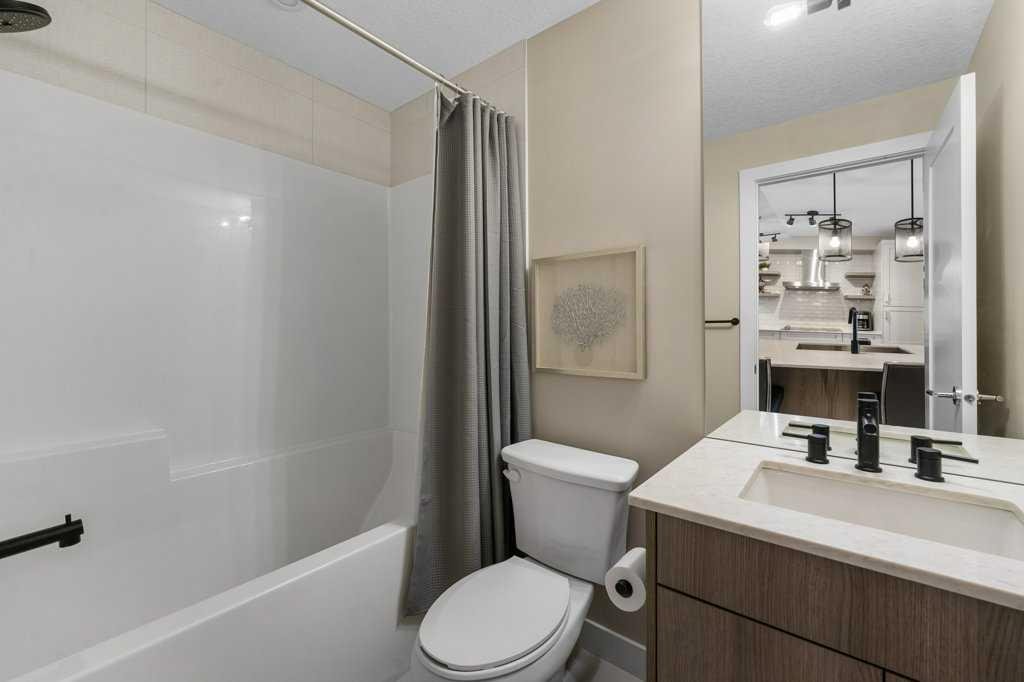 Experience a refined blend of style, comfort, and everyday convenience in this beautifully appointed 2-bedroom, 2-bathroom ground-floor condo in Auburn Bay. Formerly a Logel Homes show suite, the residence still shows like new and offers a rare private walkout entrance directly to ground level—an ideal feature for pet owners or those who appreciate seamless access. The west-facing outdoor space is a standout, featuring an oversized front deck complete with an updated privacy screen and a gas line for your BBQ, creating a bright, functional extension of the living space that’s perfect for relaxing or entertaining. Inside, the open-concept layout is filled with natural light and showcases thoughtful upgrades throughout, including waterfall-edge quartz countertops on the kitchen island, full-height cabinetry with under-cabinet lighting, a built-in wall oven and microwave, electric cooktop, and luxury vinyl plank flooring. The primary suite is anchored by a spa-inspired ensuite with dual sinks, a fully tiled shower, and a custom walk-through closet with built-in organizers. A second bedroom and full bathroom provide flexible space for guests, a home office, or additional living needs. Additional highlights include central air conditioning, titled underground parking, and a secure storage locker. Pets are welcome with no size or breed restrictions, and low condo fees include heat, water, and maintenance. Set within Calgary’s highly desirable lake community of Auburn Bay, residents enjoy access to the private beach, clubhouse, and extensive pathway system, all just minutes from shopping, restaurants, South Health Campus, and the Brookfield YMCA. Stylish, low-maintenance living in an exceptional location—this home is a must-see!
