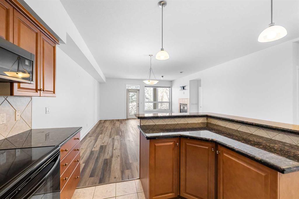 Nestled in a serene, natural setting, this beautifully appointed one-bedroom condo offers the perfect blend of modern convenience and outdoor tranquility. Located in a sought-after NW community, the property backs onto the Valley Ridge Golf Course, providing views right from your private living space. Heated by an in floor heat system you will always be at that perfect ambient temperature. Large windows frame picturesque vistas of the rolling hills and mature trees, this home offers a peaceful retreat where nature is always just a step away. Inside, you’ll find an open-concept living and dining area, designed to maximize space and light. The living room features large windows that invite the outdoors in, creating a bright and airy atmosphere. The modern kitchen is equipped with stainless steel appliances, oversized island, sleek countertops, and plenty of storage, making it a perfect space for both entertaining and everyday cooking. This main floor unit walks directly out onto your own private patio that spans across the unit providing tons of personal outdoor living space. The spacious bedroom provides a comfortable haven, with ample closet space and more of those views of the golf course and surrounding greenery. The ensuite is stylishly designed, offering a clean, contemporary feel with all the amenities you’d expect for ultimate relaxation. There is a flex room that has been used as an office with builtins, and shares a space with in-suite laundry making laundry day a breeze without the need to leave the comfort of your home. This unit also comes with two underground heated parking stalls, ensuring you’ll never have to worry about parking, no matter the weather, as well as a separate storage locker to keep your seasonal items, sporting equipment, and extra belongings neatly tucked away. The complex is surrounded by nature trails and pathways, perfect for outdoor enthusiasts who enjoy hiking, biking, or simply strolling through the scenic surroundings. The Valley Ridge Golf Course offers a stunning backdrop, with beautifully manicured fairways and a peaceful atmosphere, making this condo an ideal location for those who appreciate a connection to nature without sacrificing the conveniences of urban living. Whether you’re relaxing in the comfort of your own home or exploring the outdoors, this condo offers the best of both worlds—privacy, convenience, and an unparalleled connection to the beauty of nature. It’s a perfect place for anyone seeking a peaceful and modern living space with easy access to outdoor recreation and stunning views.